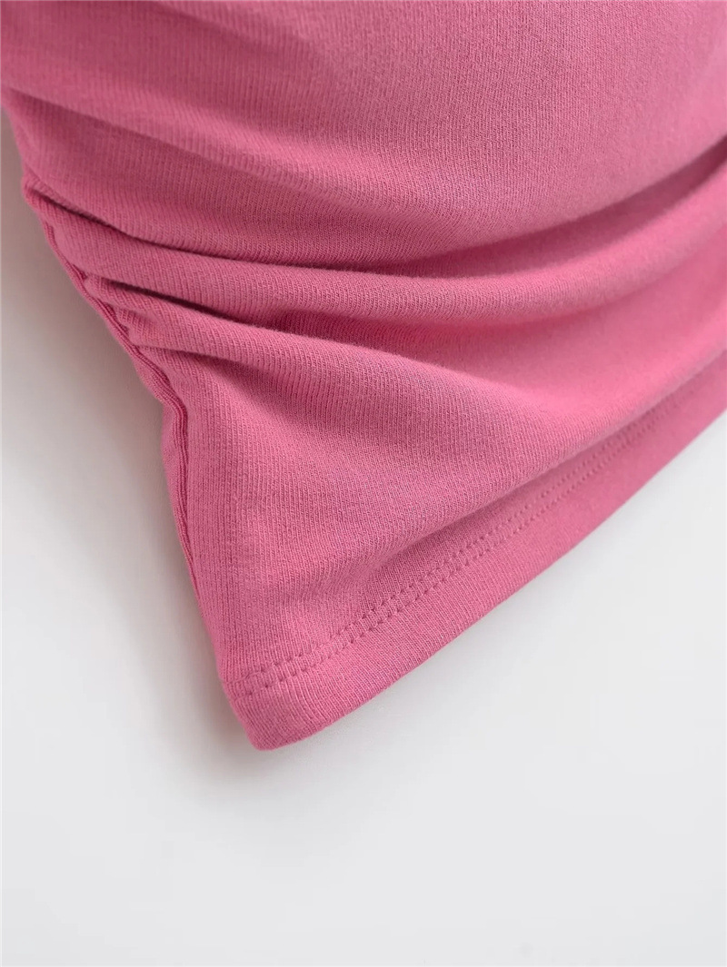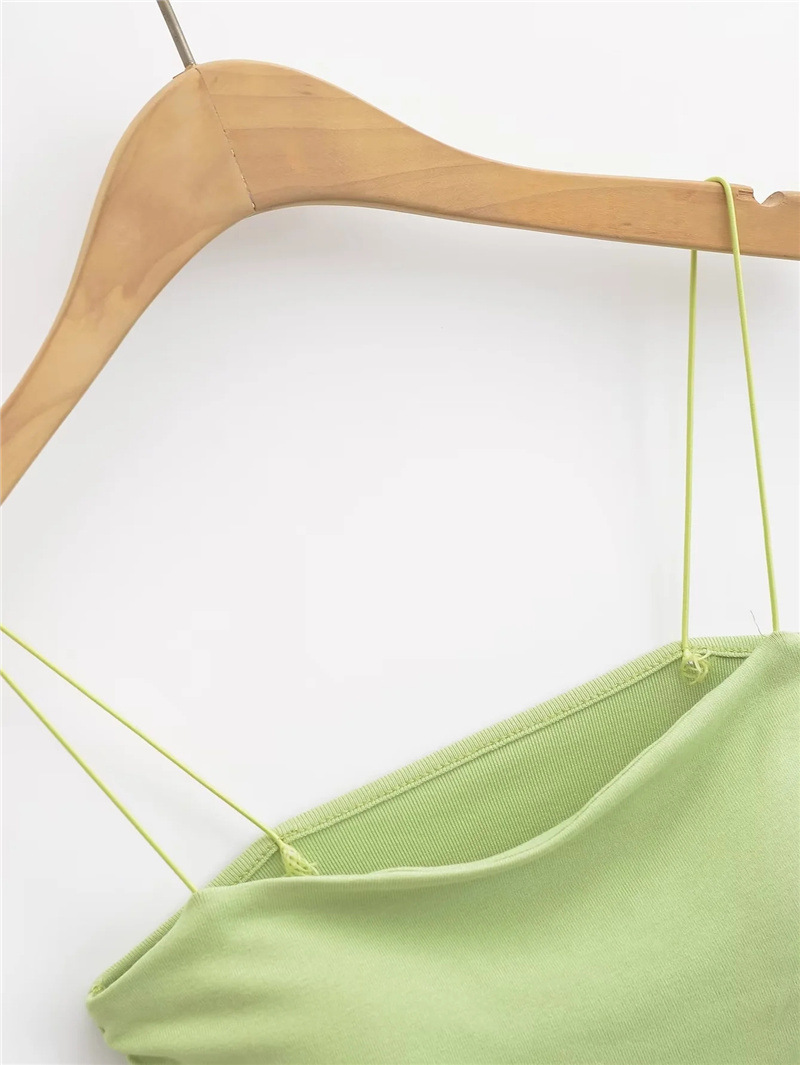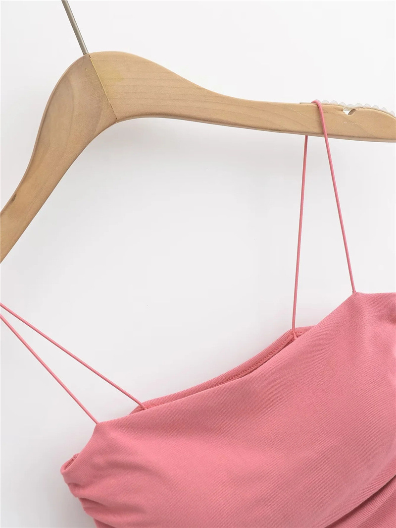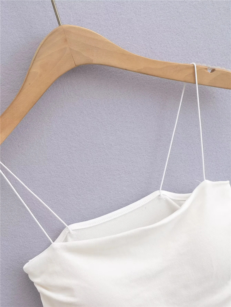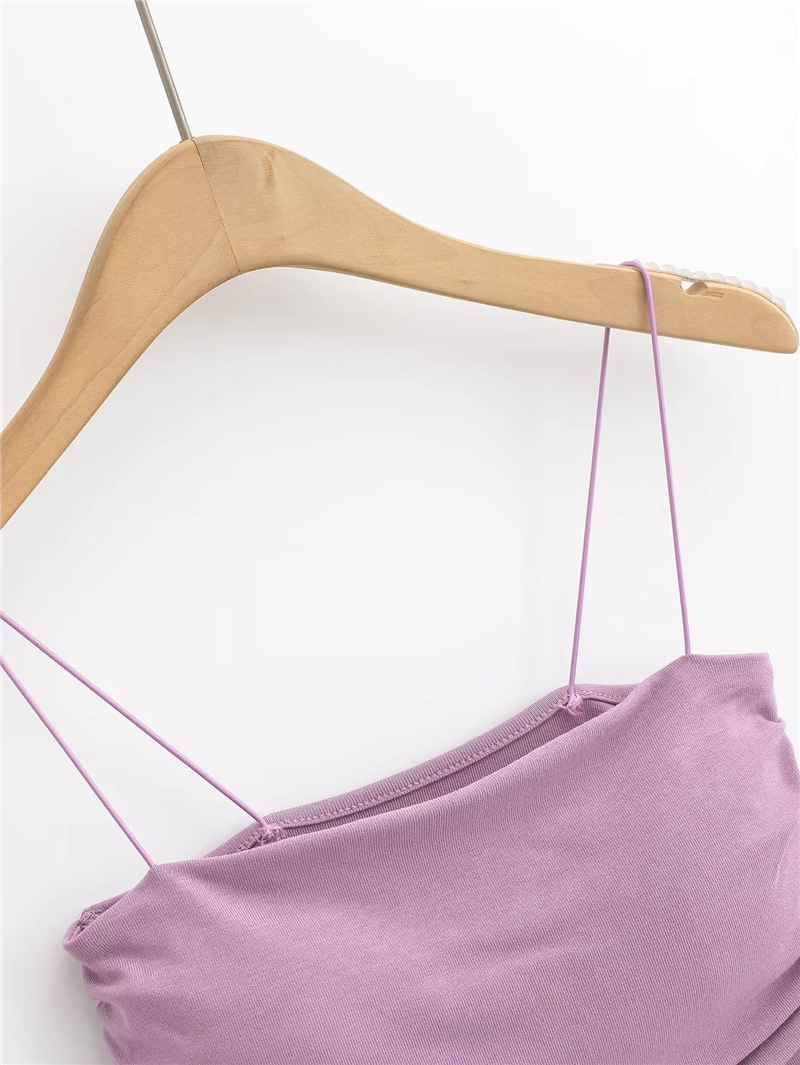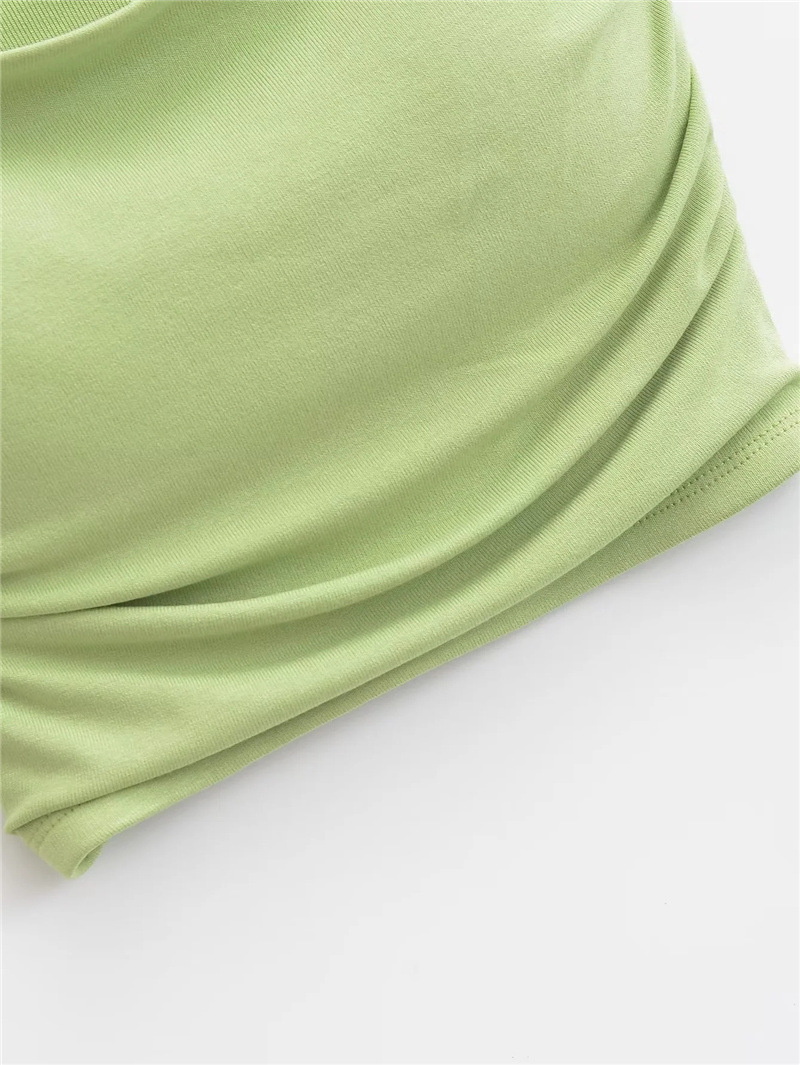 유럽과 미국 스타일 섹시한 평평한 입 주름 고무 작은 슬링 여름 새로운 짧은 배꼽 슬림 핏 슬리밍 향신료 소녀 조끼
