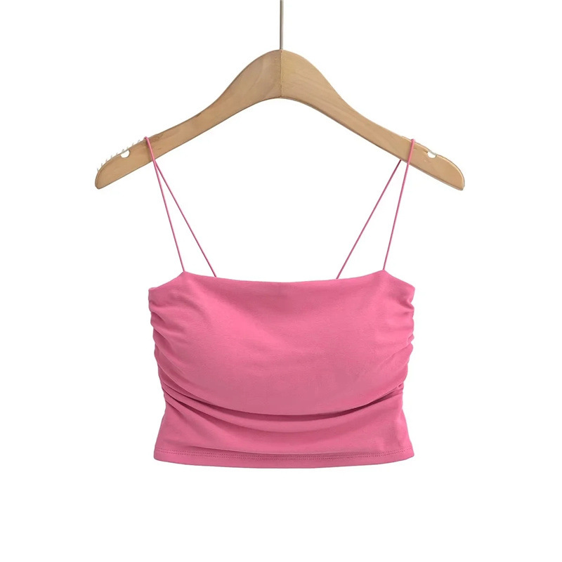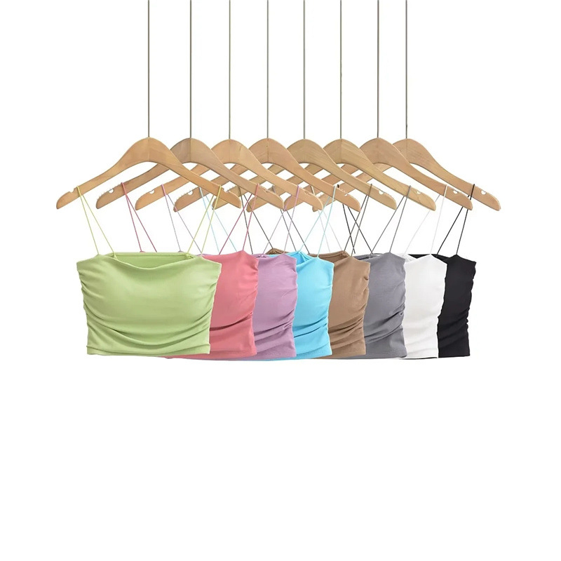 유럽과 미국 스타일 섹시한 평평한 입 주름 고무 작은 슬링 여름 새로운 짧은 배꼽 슬림 핏 슬리밍 향신료 소녀 조끼스토어 가기