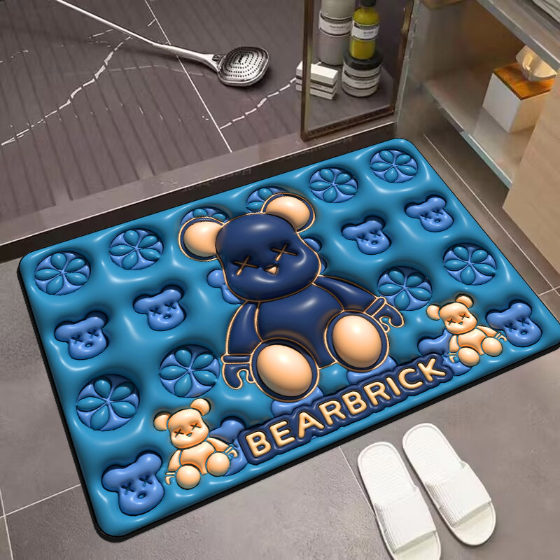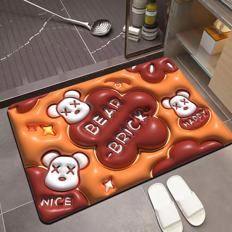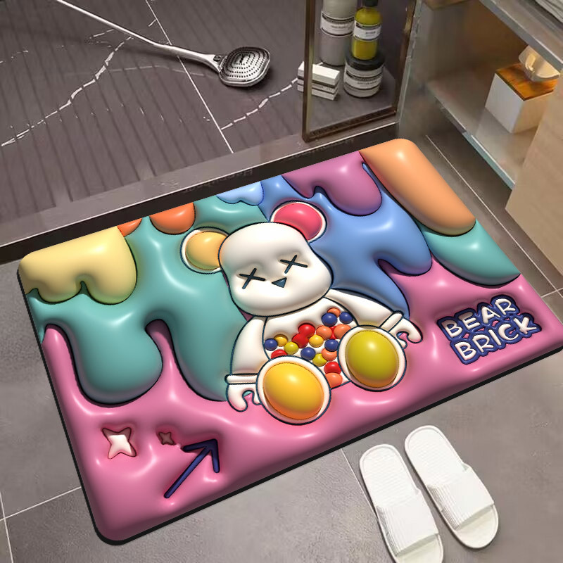 새로운 팽창식 바닥 매트, 만화 폭력적인 곰 모양의 모조 규조토 욕실 바닥 매트, 3D 시각적 규조토 욕실 발 매트