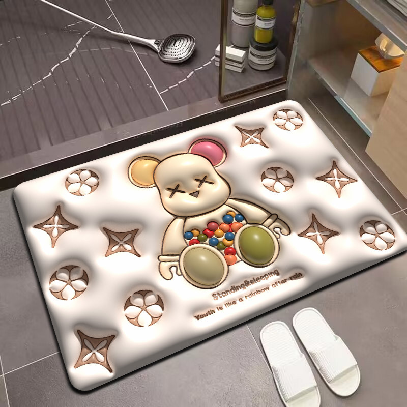 새로운 팽창식 바닥 매트, 만화 폭력적인 곰 모양의 모조 규조토 욕실 바닥 매트, 3D 시각적 규조토 욕실 발 매트스토어 가기