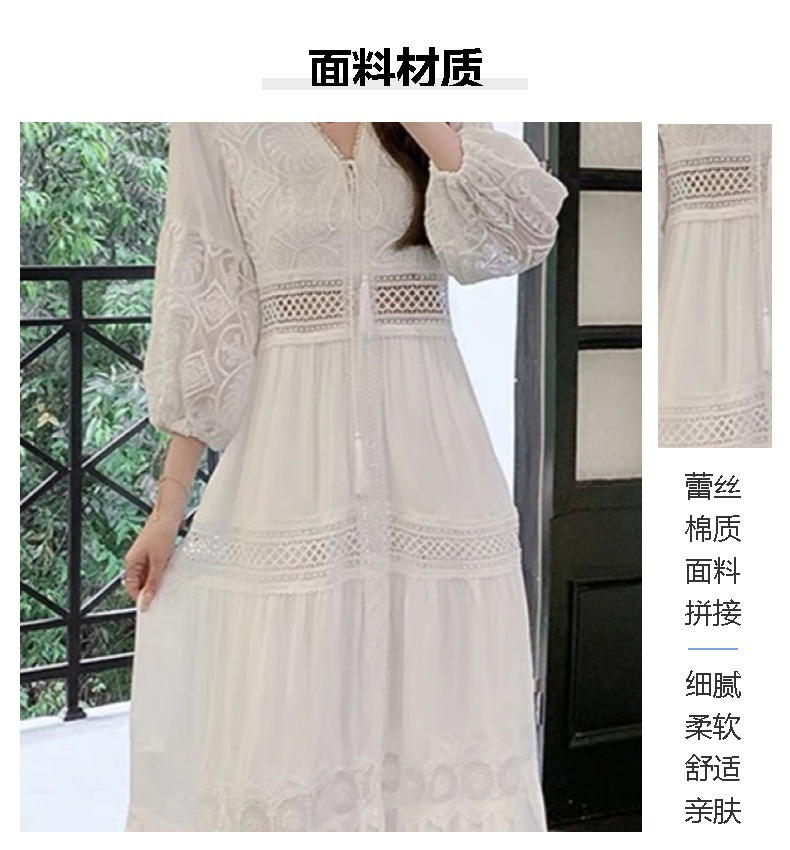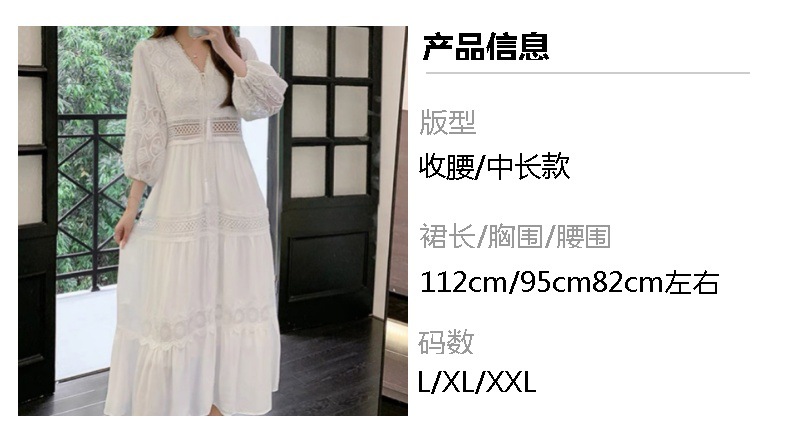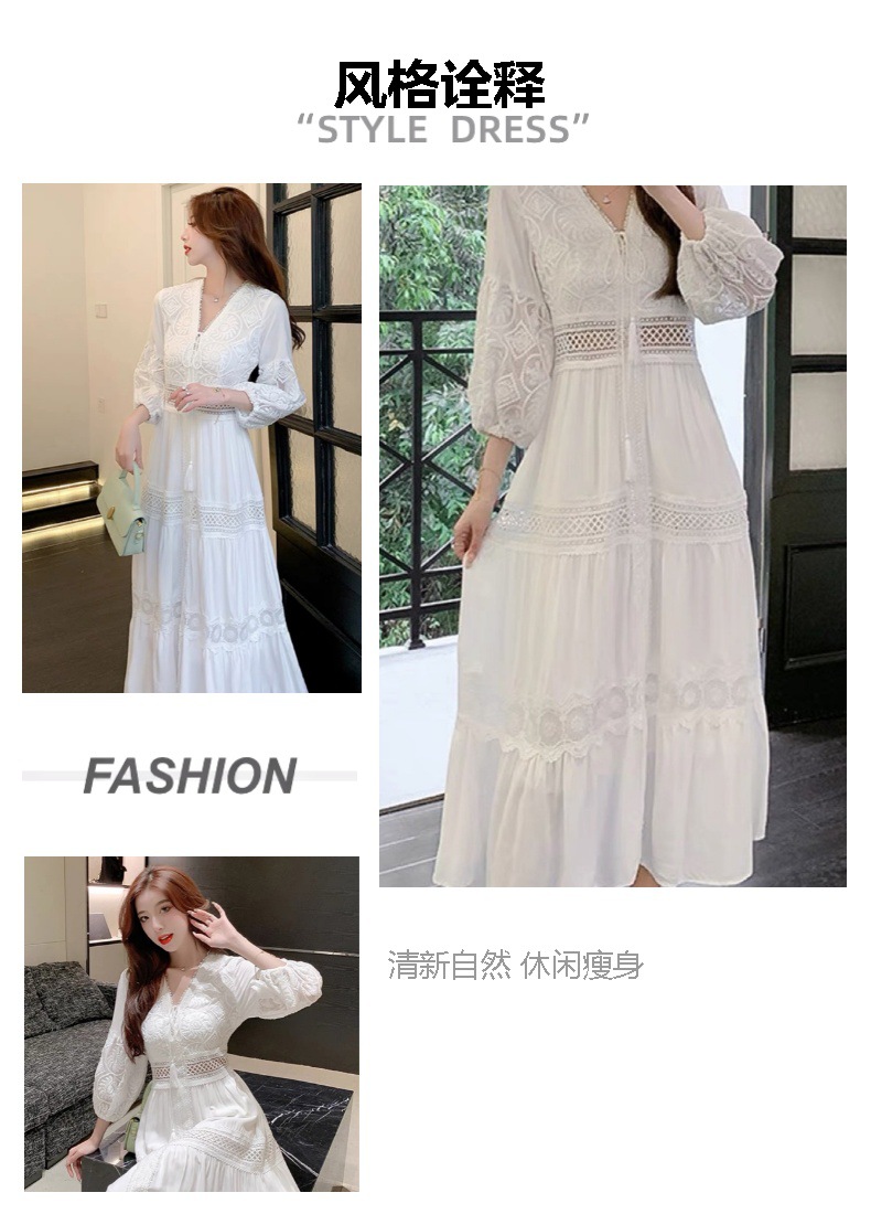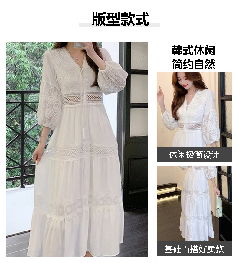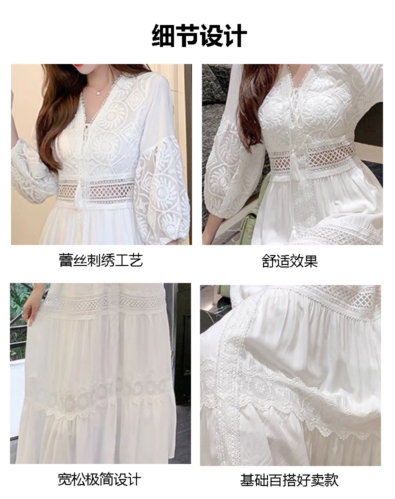 2025 인기 원피스 봄과 여름 화이트 달콤한 프렌치 퍼프 소매 긴 원피스 해변 원피스 여행 스커트스토어 가기