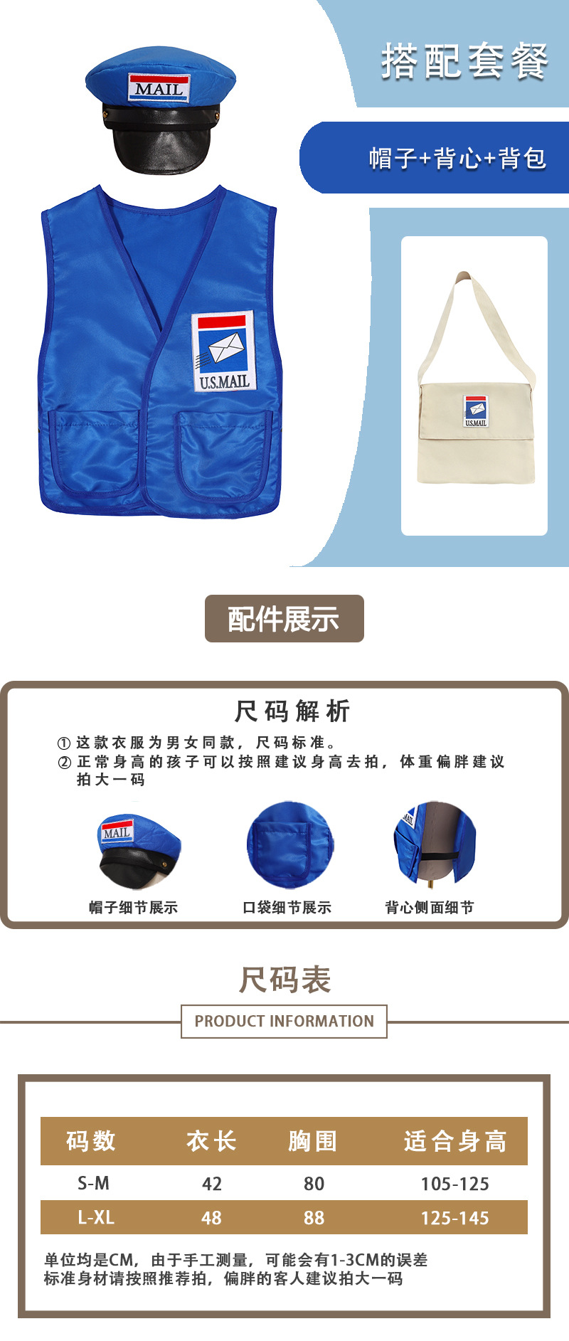 새로운 우체부 코스튬 어린이날 공연복 할로윈 코스프레 의상
