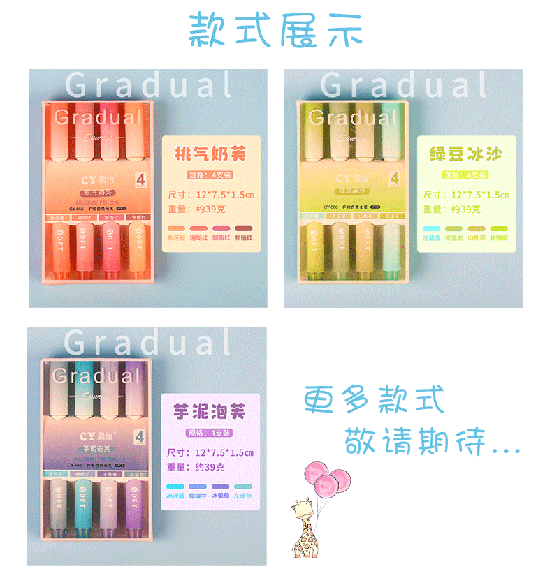 그라디언트 컬러 형광펜 하이 컬러 값 컬러 키 마크 학생 마커 아이 컬러 대용량 형광펜스토어 가기