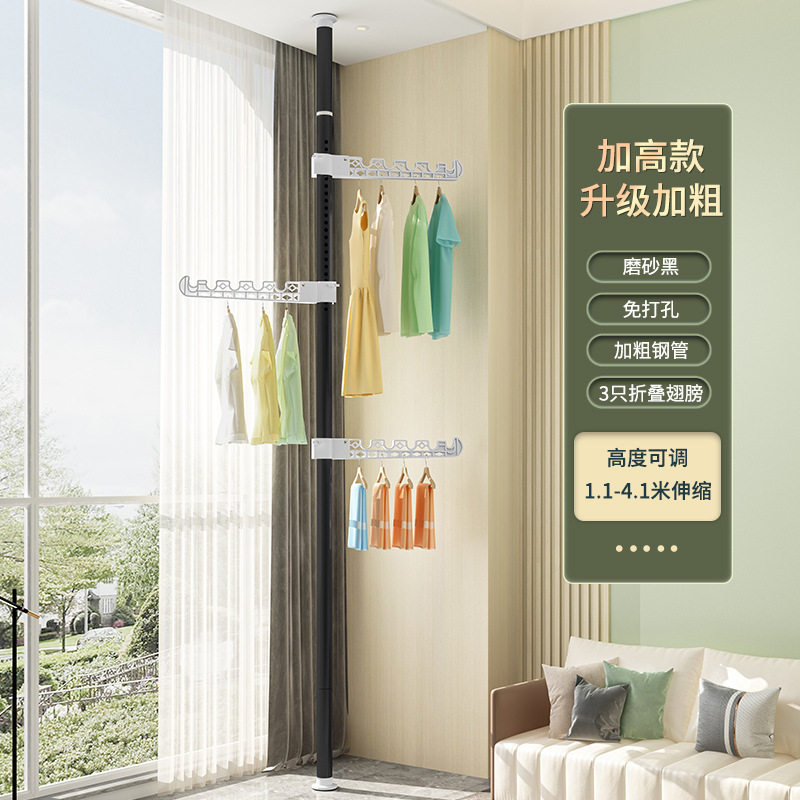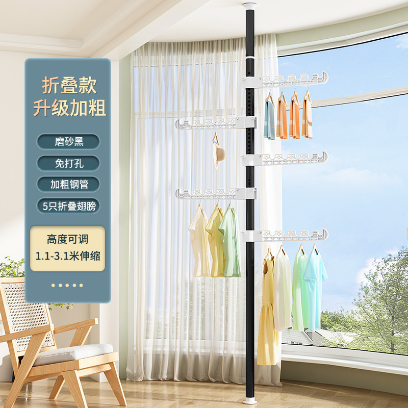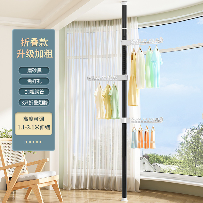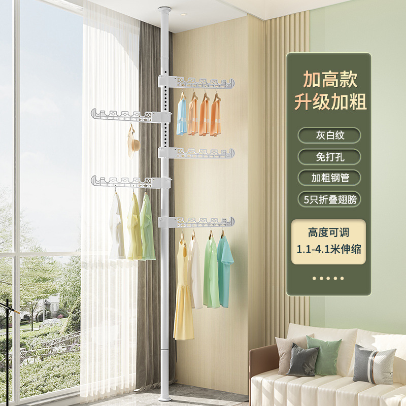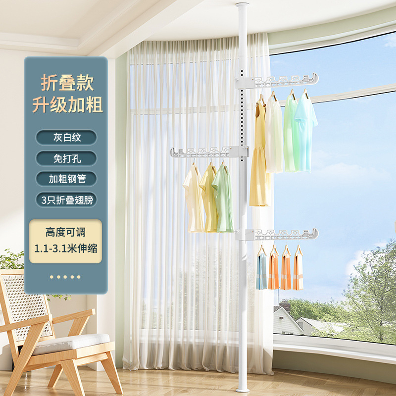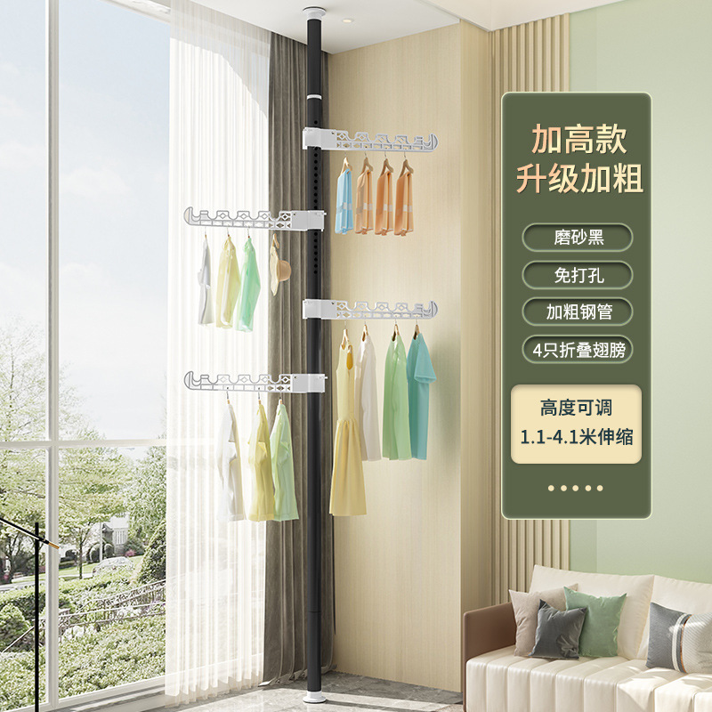 직립 건조 랙 가정용 바닥 침실 구멍없는 텔레스코픽로드 발코니 창 건조 랙 유물스토어 가기
