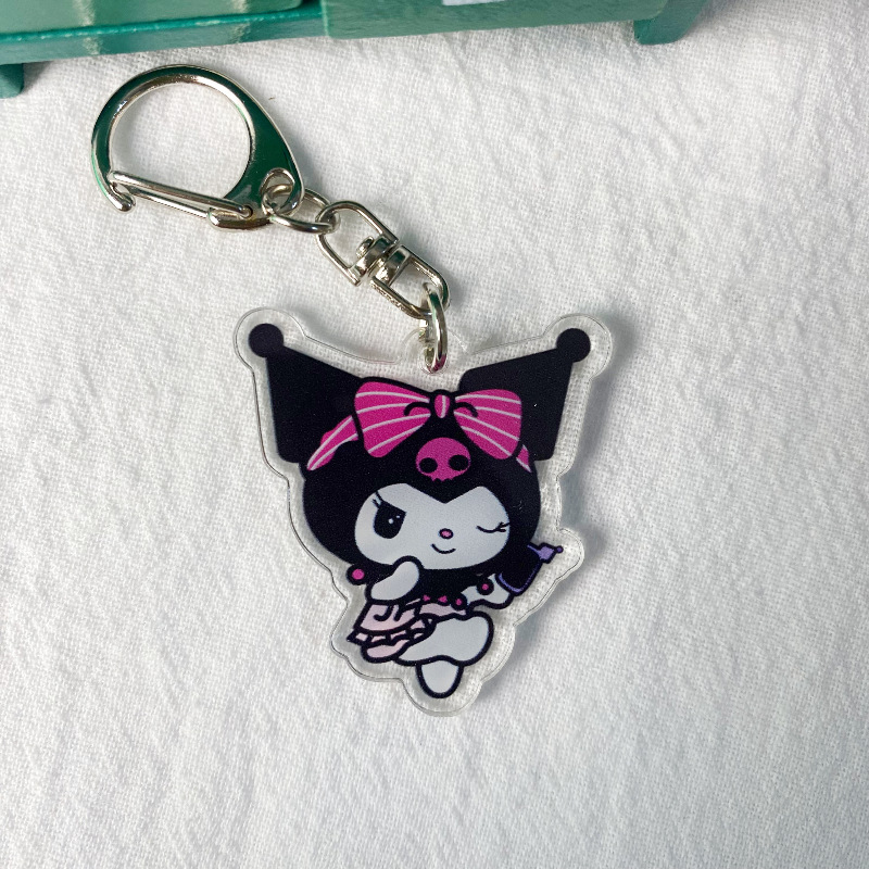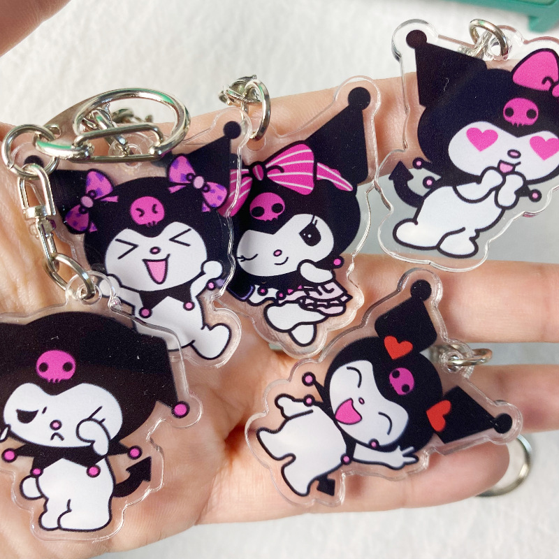 엄선된 귀여운 만화 쿠로미 양면 투명 아크릴 키체인 여자 가방 액세서리 커플용 작은 장식품