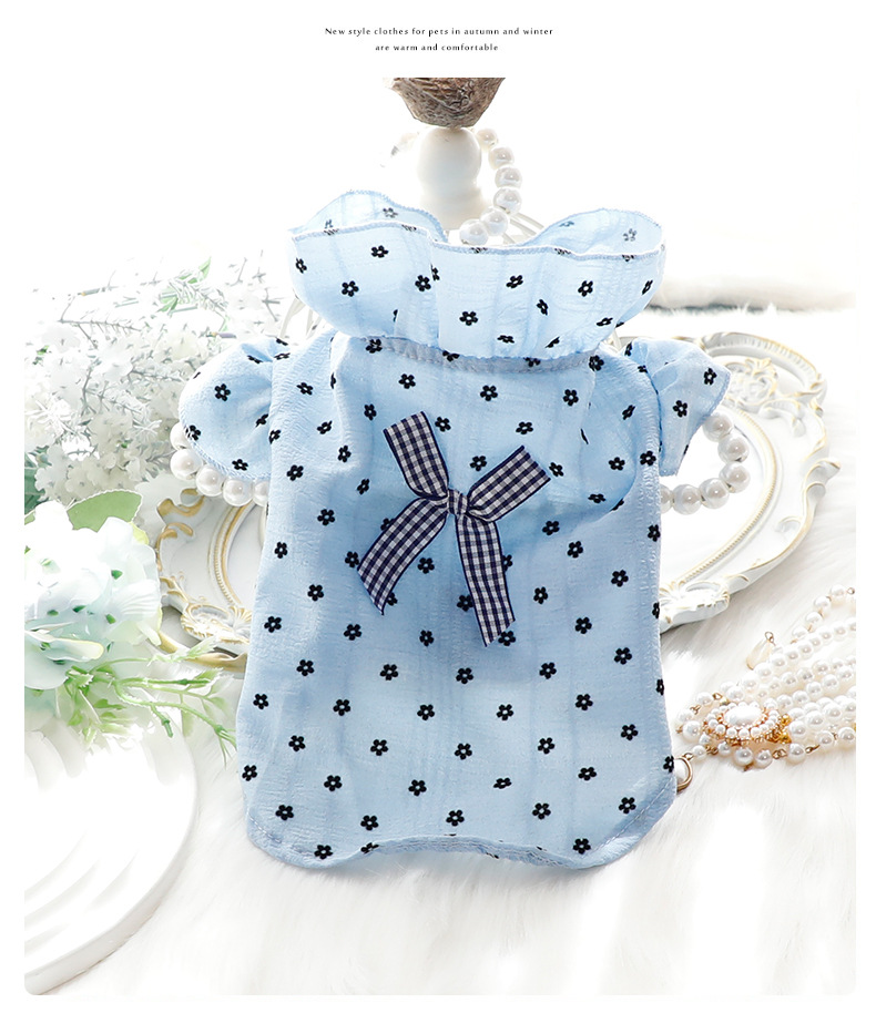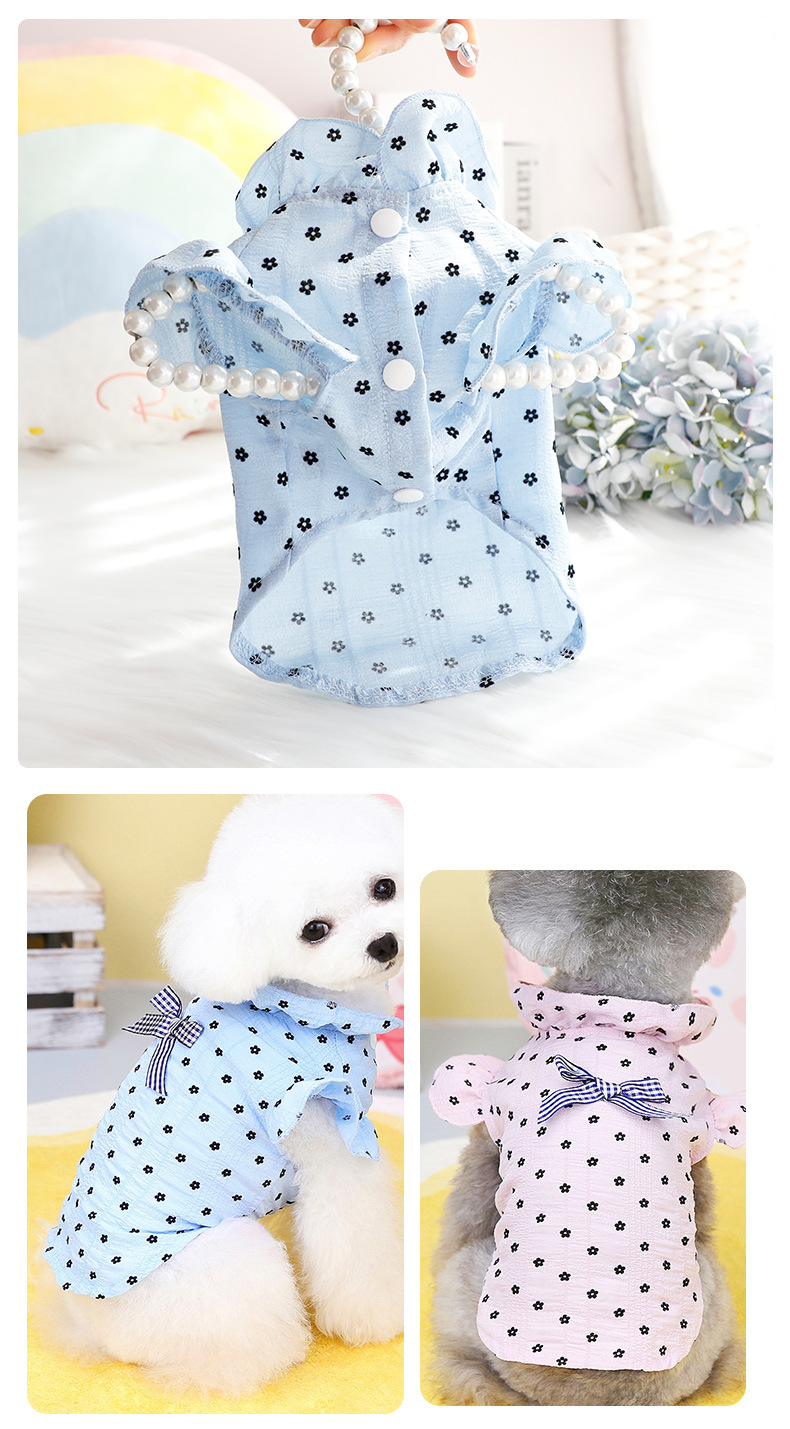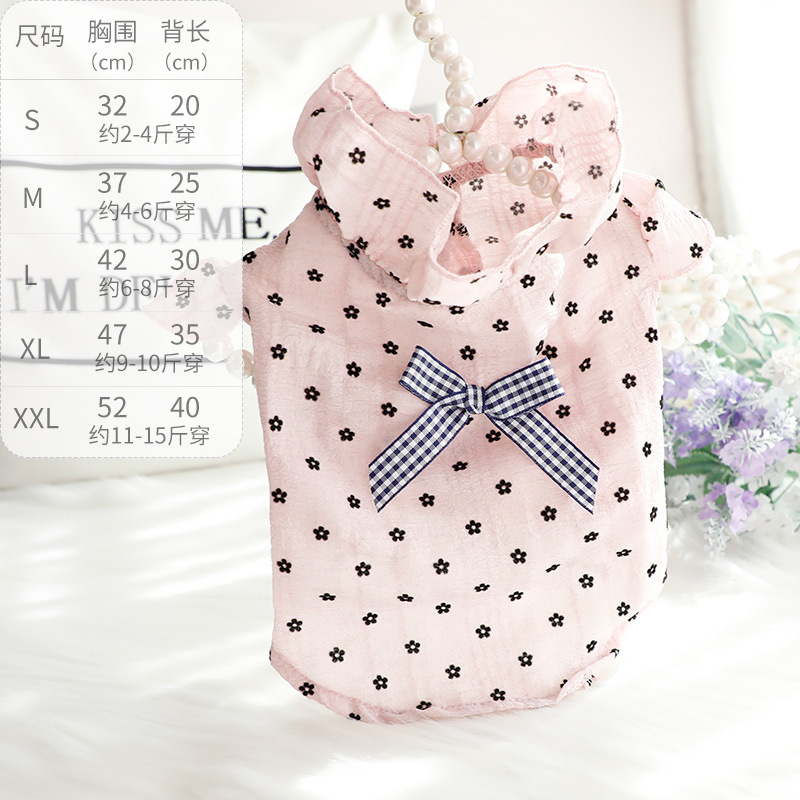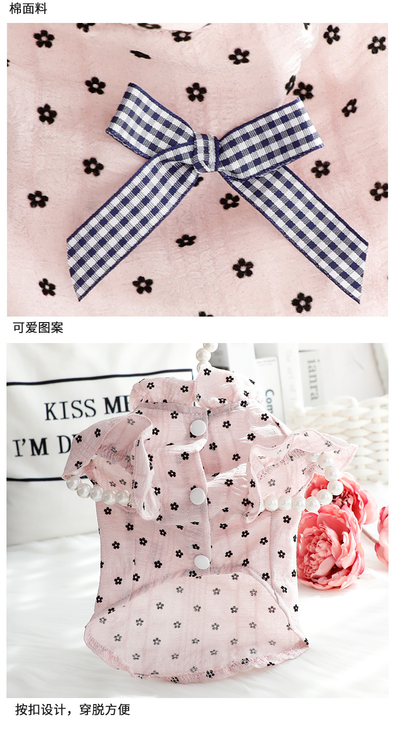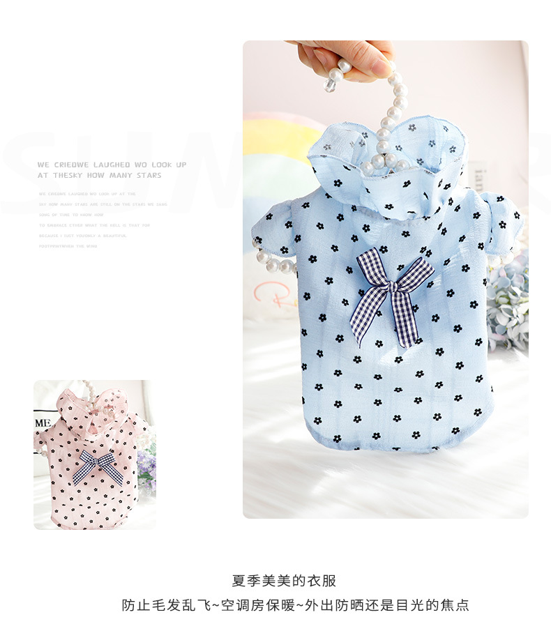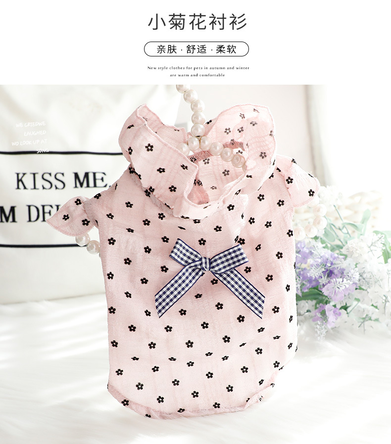 개 옷 봄과 여름 얇은 고양이 공주 꽃 셔츠 하이 칼라 레이스 소형 개 테디 펫 4682 도매스토어 가기