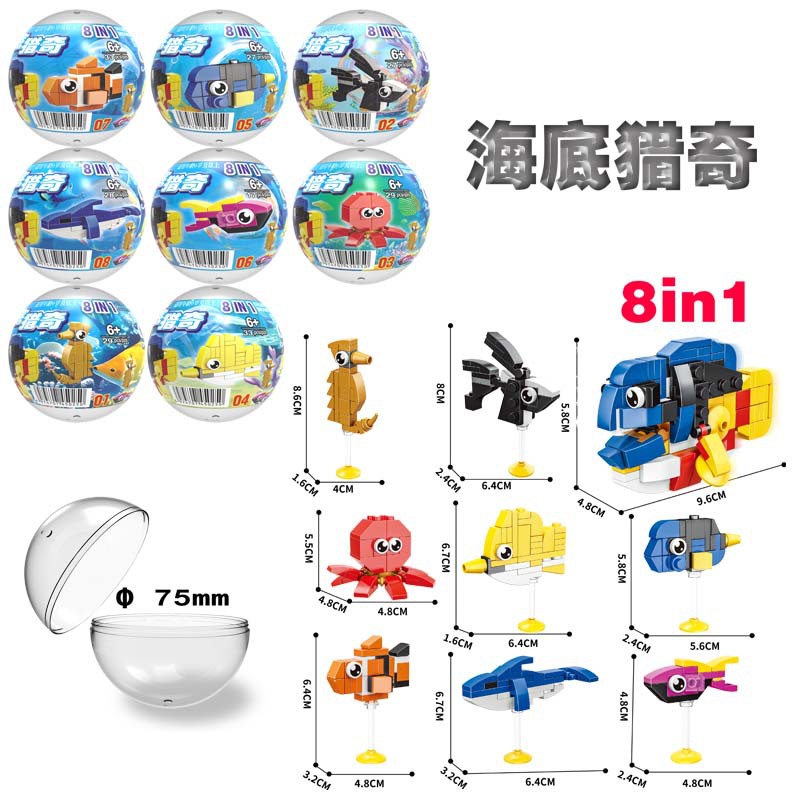 • Ocean Fish 8-in-1 [한 세트에 8개] 볼 직경 75mm