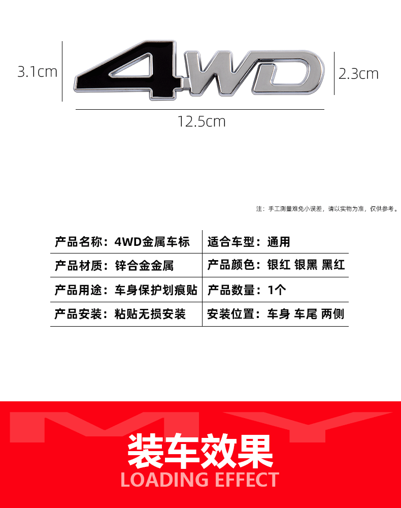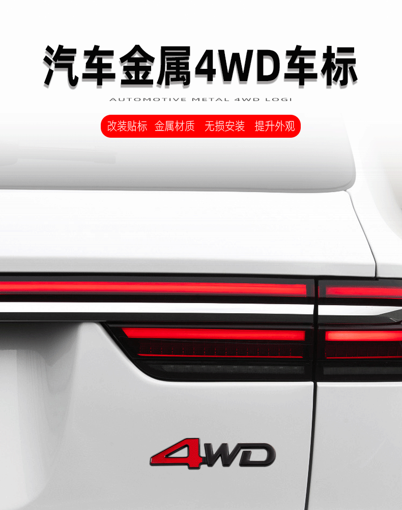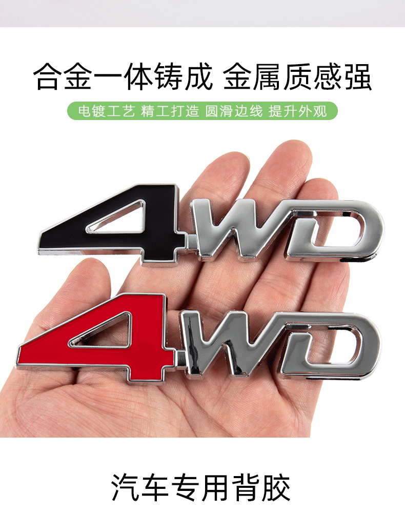 자동차 4 륜 구동 오프로드 자동차 스티커 4WD 금속 자동차 로고 차체 스티커 수정 개인화 된 3D 입체 자동차 꼬리 로고 장식 스티커