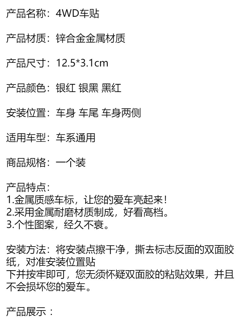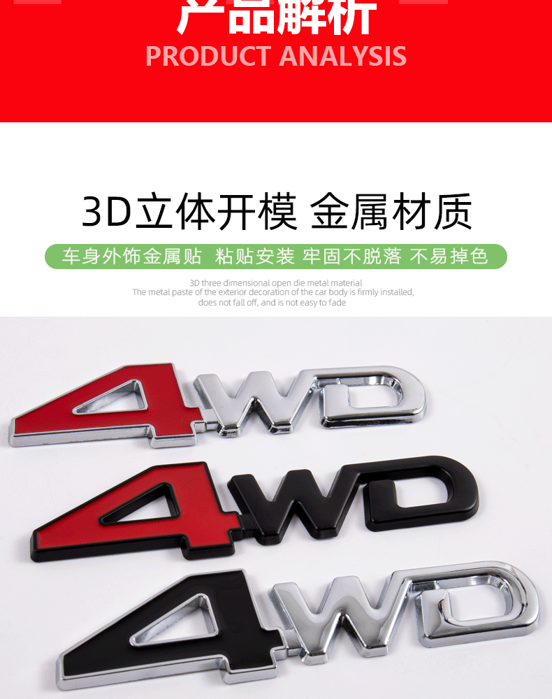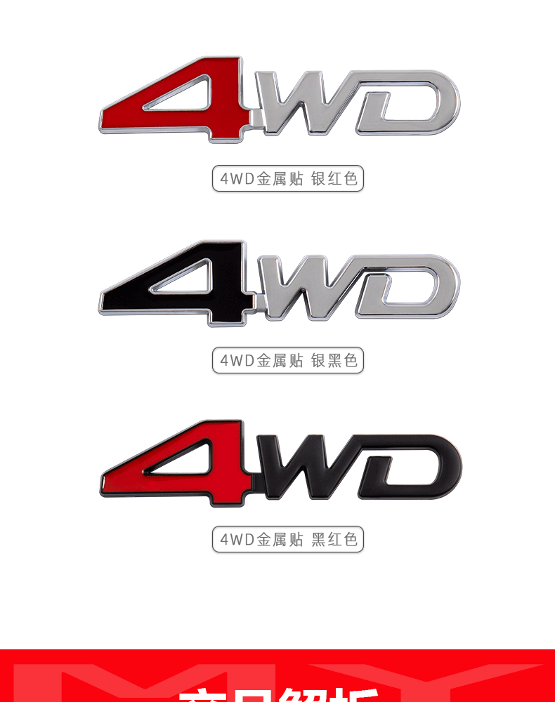 자동차 4 륜 구동 오프로드 자동차 스티커 4WD 금속 자동차 로고 차체 스티커 수정 개인화 된 3D 입체 자동차 꼬리 로고 장식 스티커스토어 가기
