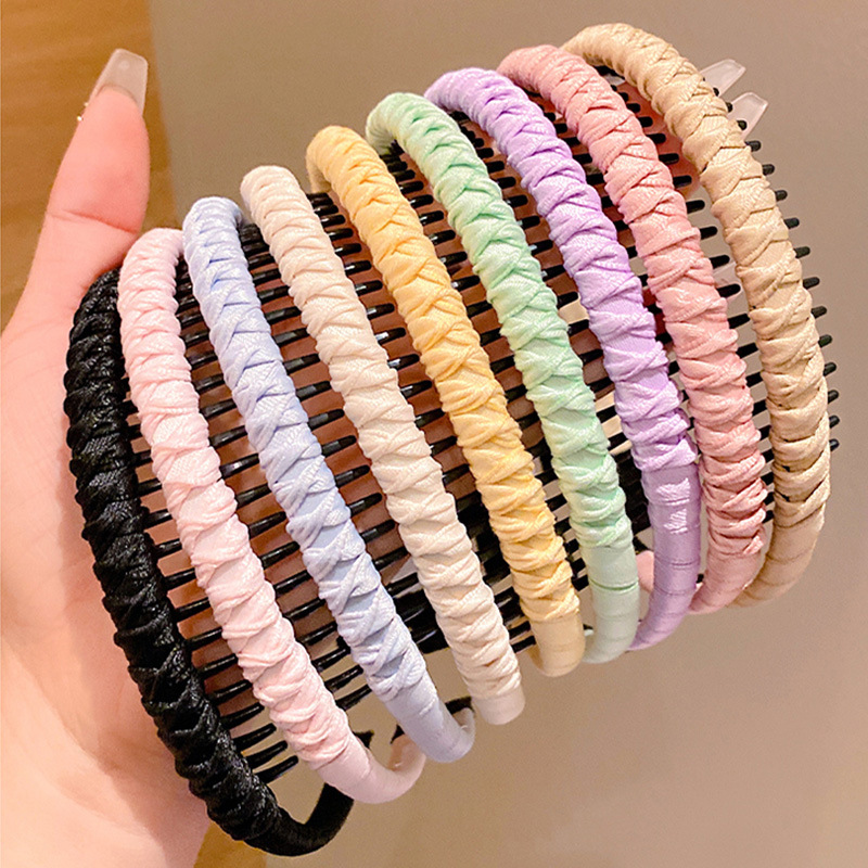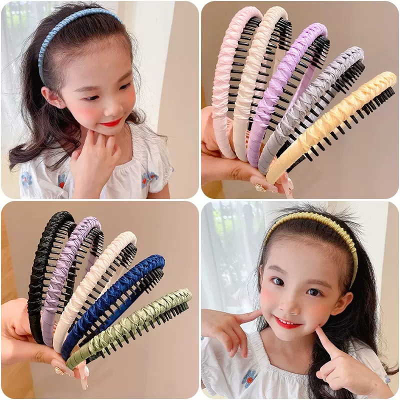 부러진 머리 유물 간단한 톱니 미끄럼 방지 헤어밴드 어린이 패브릭 격자 무늬 머리띠 여아 머리핀 모자 여아 헤어 액세서리