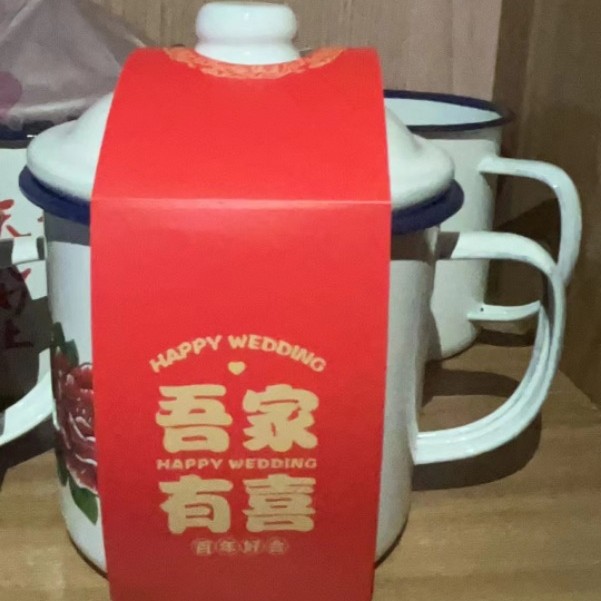 향수를 불러 일으키는 클래식 빈티지 레드 더블 행복 에나멜 컵 빨간 철 차 고치기 뚜껑 웨딩 축제 팩 빈티지 머그