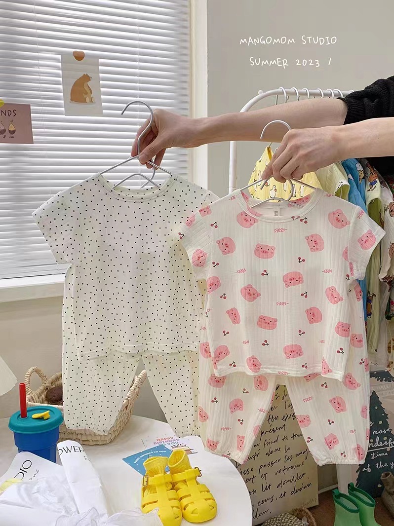 2023 여름 여아용 반팔 세트 아기 여름옷 투피스 잠옷 부드럽고 통기성이 좋으며 외출복으로도 착용 가능스토어 가기