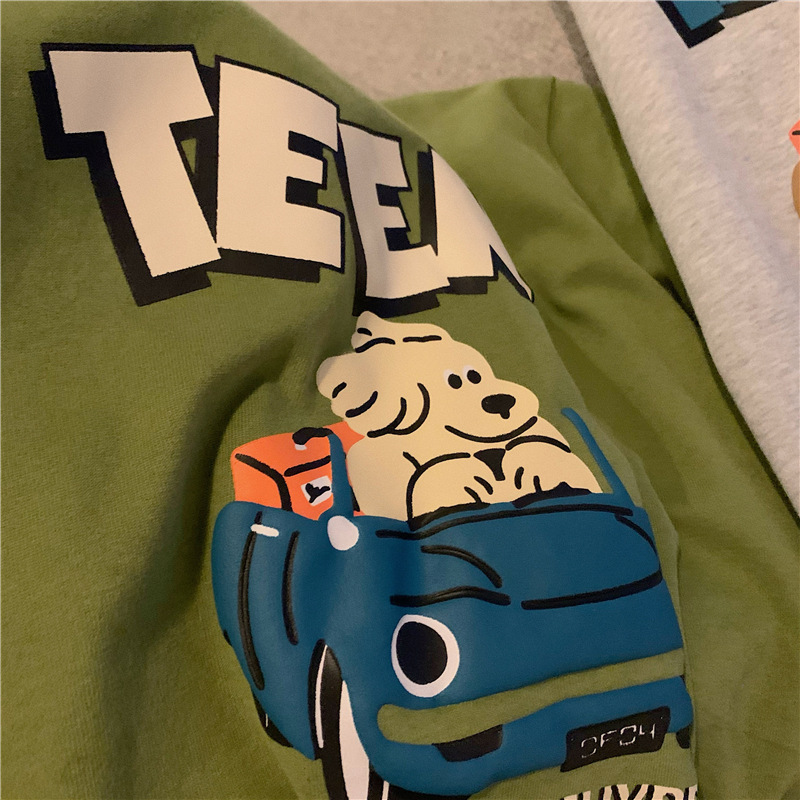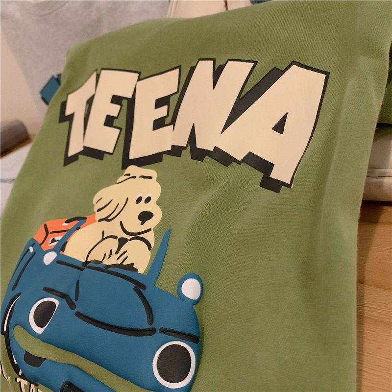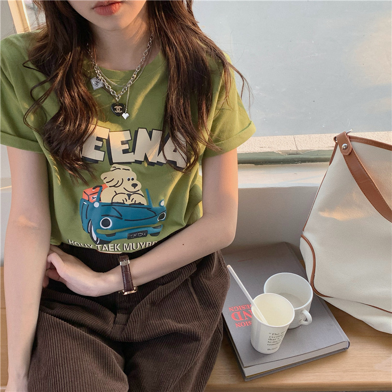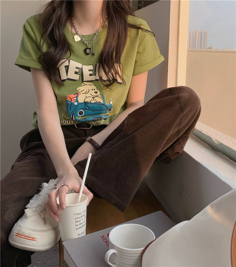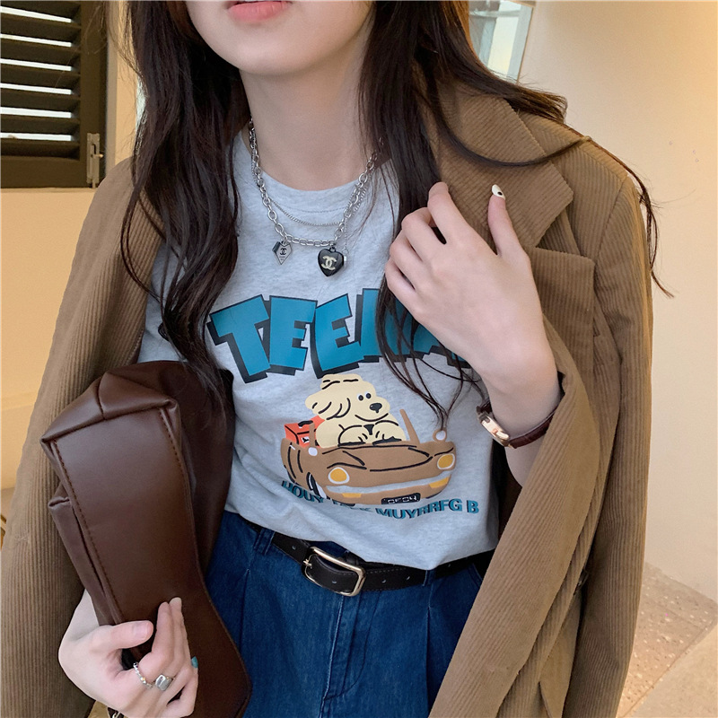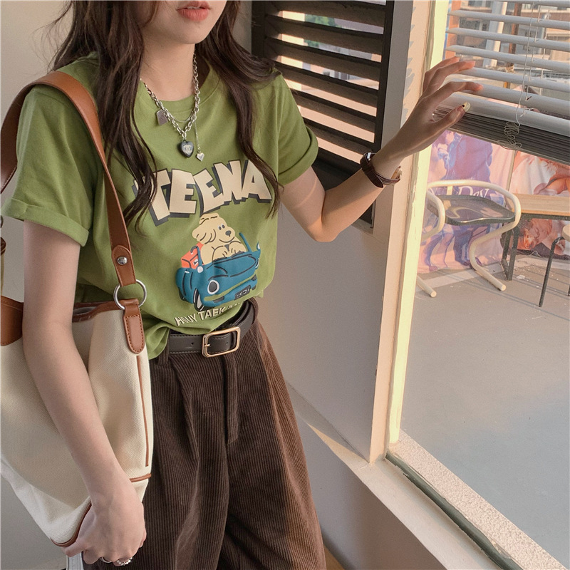 여름 2025 새로운 레트로 퓨어 코튼 반팔 티셔츠 여성용 한국 세대 디자인 프린트 캐주얼 숄더 레귤러 티셔츠 트렌디스토어 가기