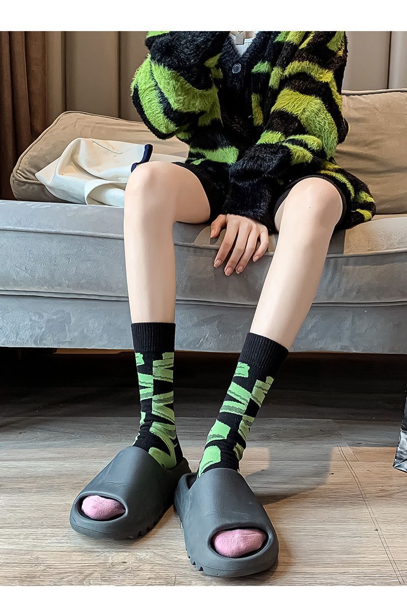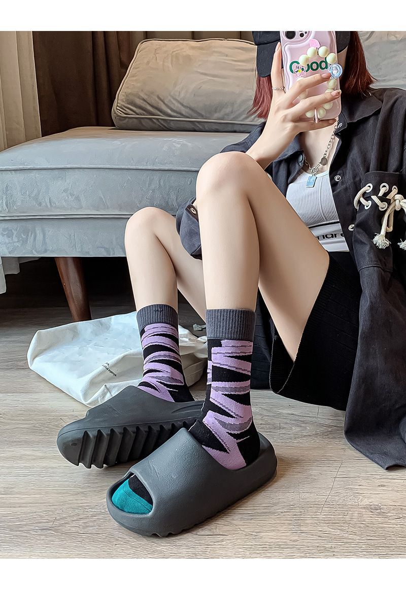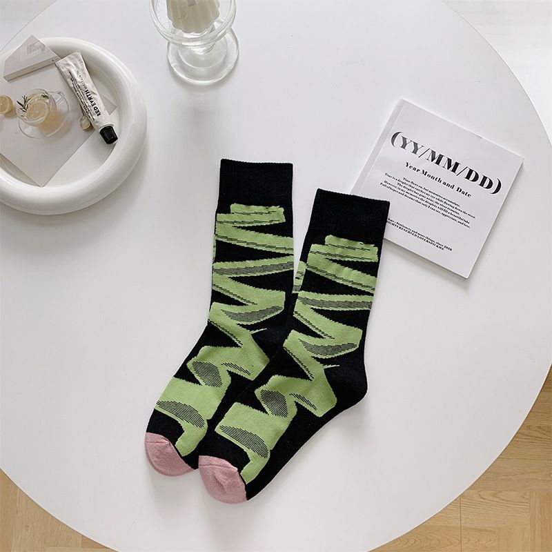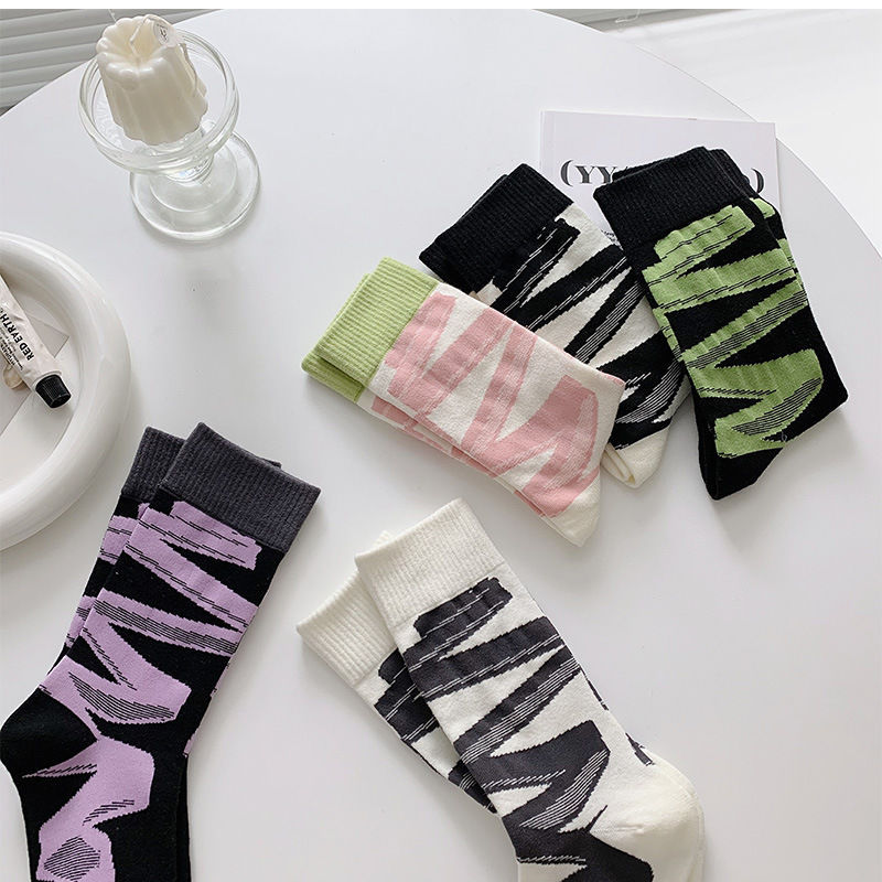 양말 여성용 봄과 여름 모든 매치 컬러 대비 스트라이프 중간 길이 양말 트렌디 한 일본 그물 적외선 착용 유행 거리 맞춤 양말스토어 가기