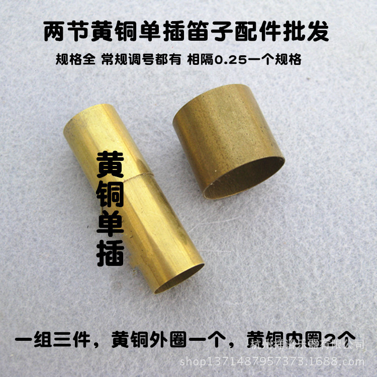 黄铜单插配件一组3件,外圈黄铜1个,内圈黄铜2个,适合各档笛箫插口,常规调门的尺寸都有,相隔0.25一个规格!