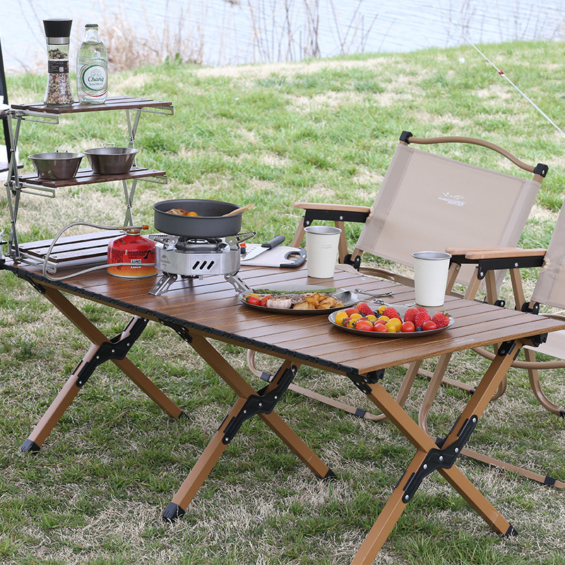 탄소강 접이식 테이블 비치 가구 스타일 간단한 캠핑 접이식 테이블 금속 테이블 바베큐 의자 야외 계란 롤 테이블