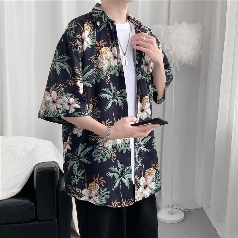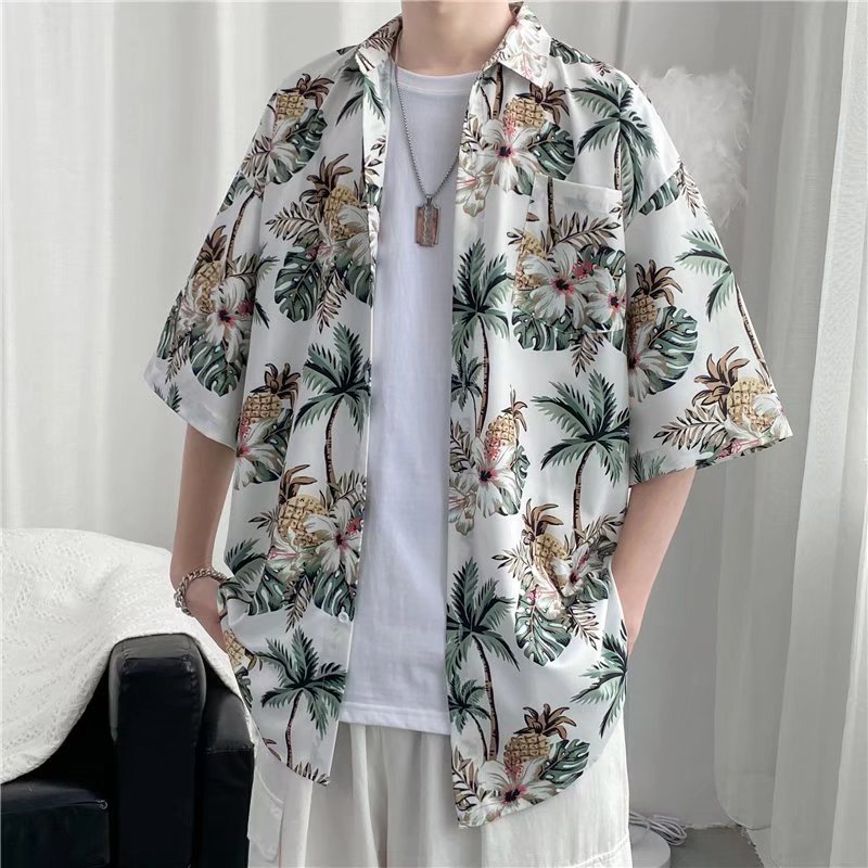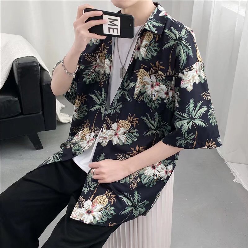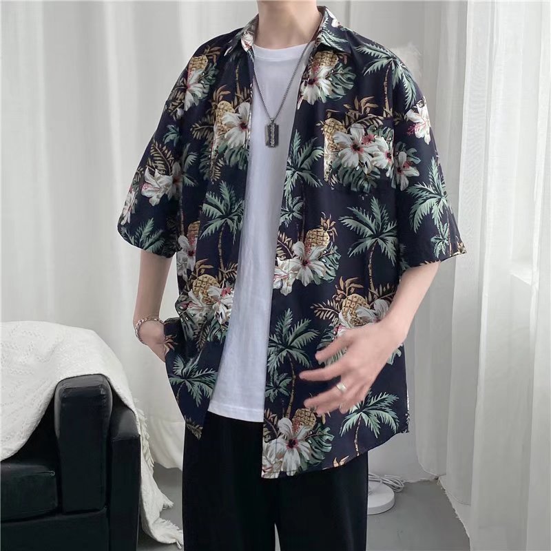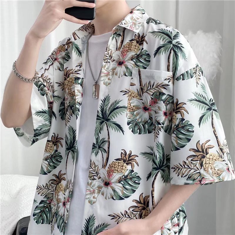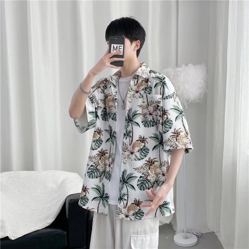 하이난 섬 의류 Sanya Weiyi 비치 펜던트 반팔 셔츠 남자의 더피 잘 생긴 복고풍 홍콩 맛 고대 꽃 옷 커플 트렌디