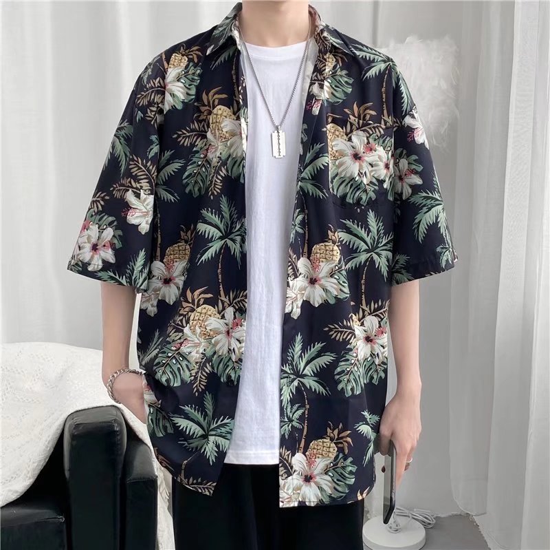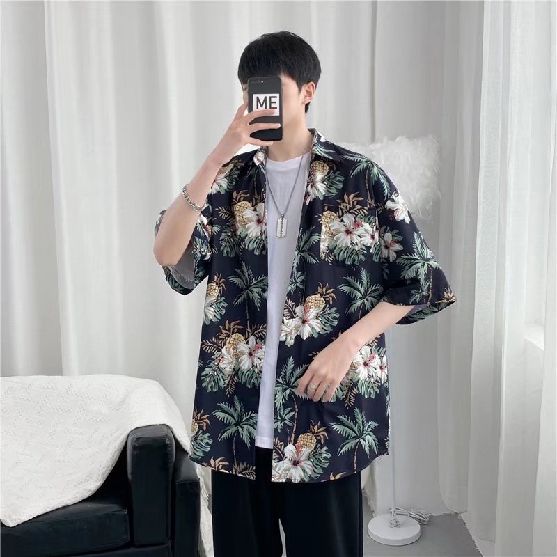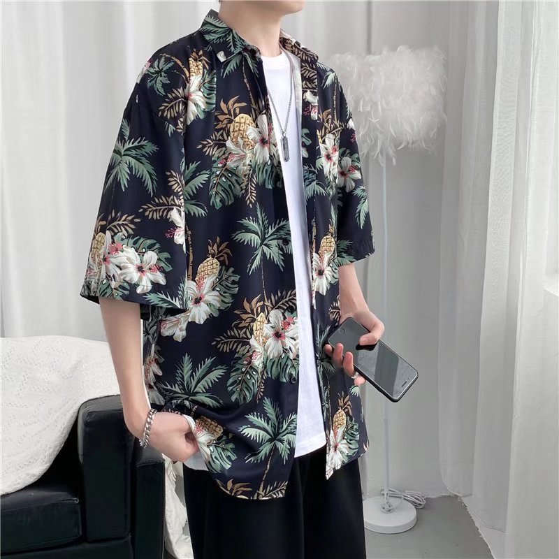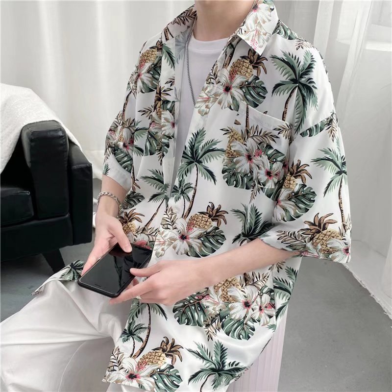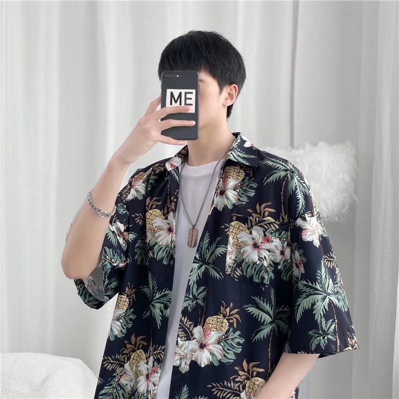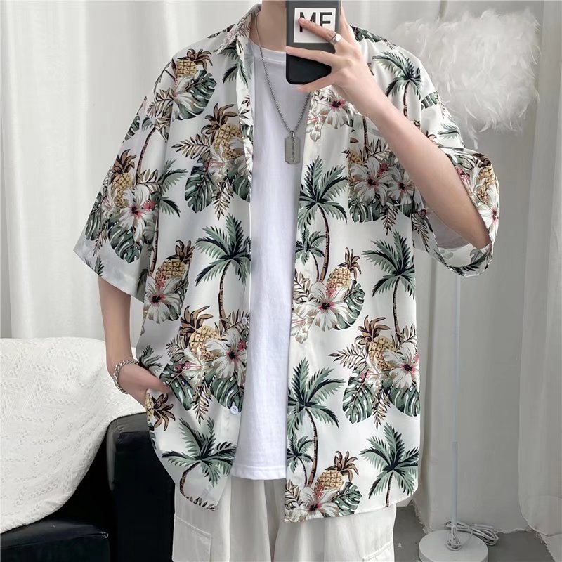 하이난 섬 의류 Sanya Weiyi 비치 펜던트 반팔 셔츠 남자의 더피 잘 생긴 복고풍 홍콩 맛 고대 꽃 옷 커플 트렌디