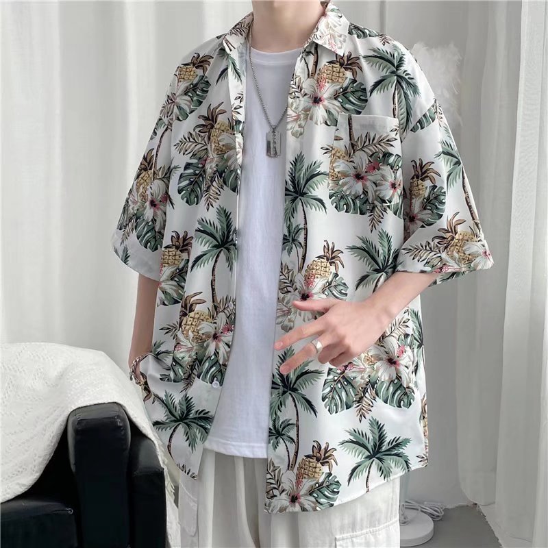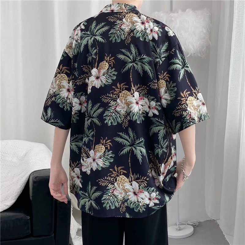 하이난 섬 의류 Sanya Weiyi 비치 펜던트 반팔 셔츠 남자의 더피 잘 생긴 복고풍 홍콩 맛 고대 꽃 옷 커플 트렌디스토어 가기
