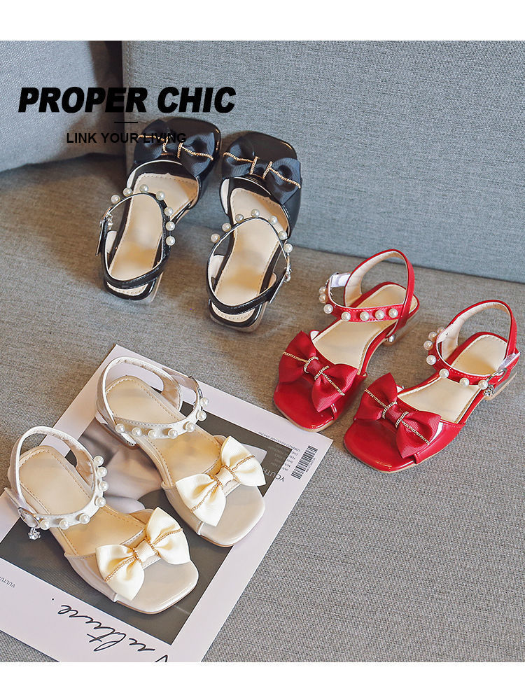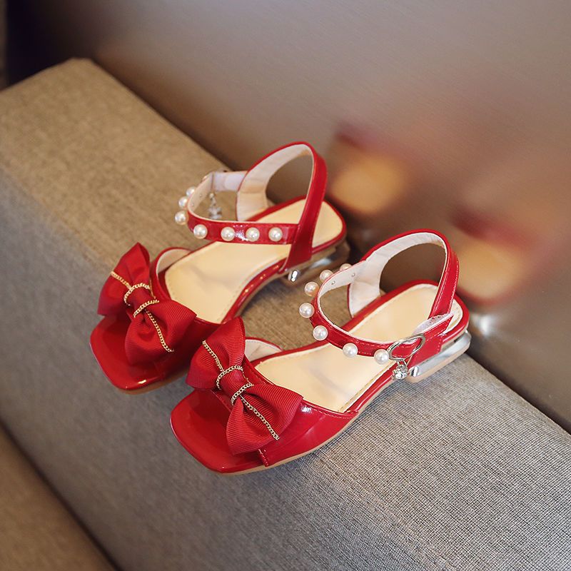여아 샌들 2023 여름 새로운 소녀의 활 부드러운 밑창 한국식 공주 신발 대형 어린이 미끄럼 방지 신발