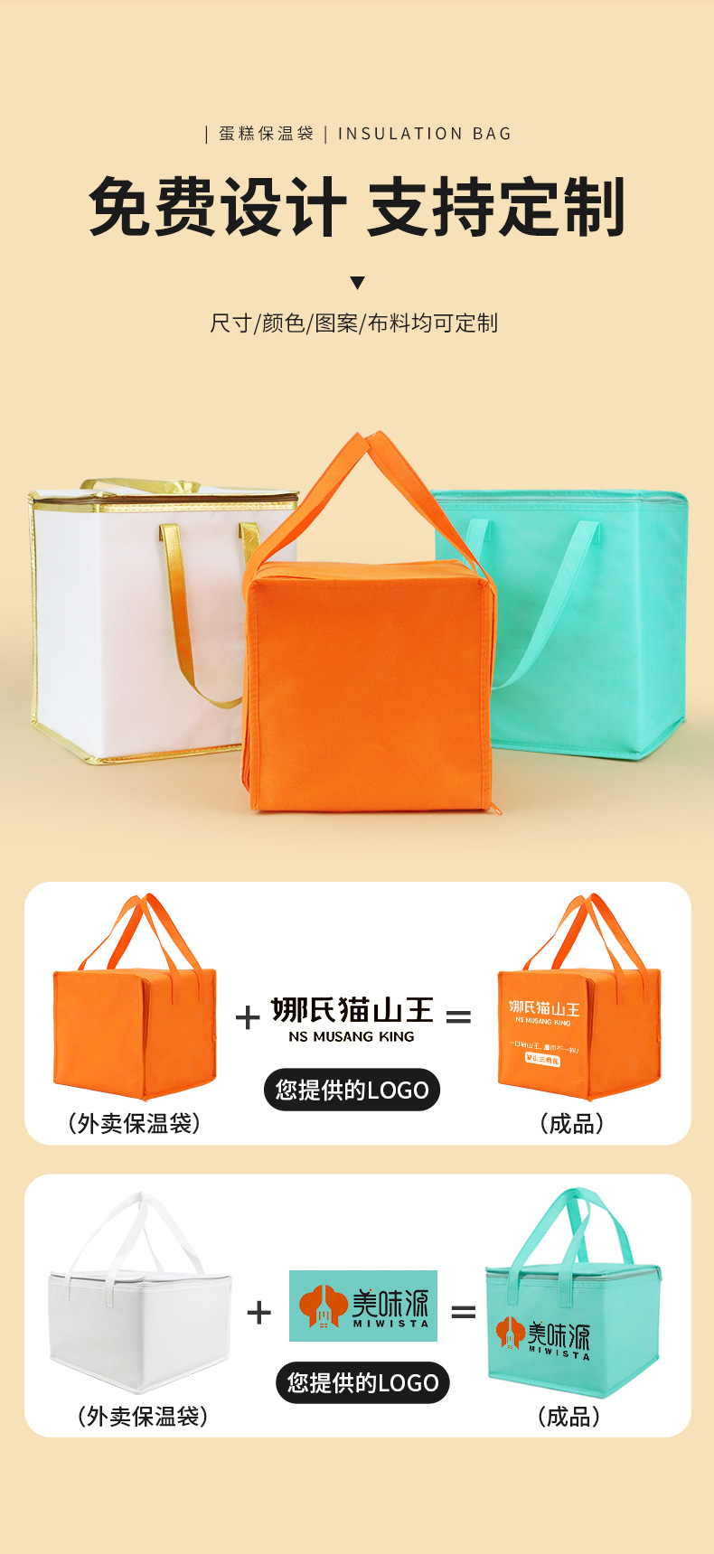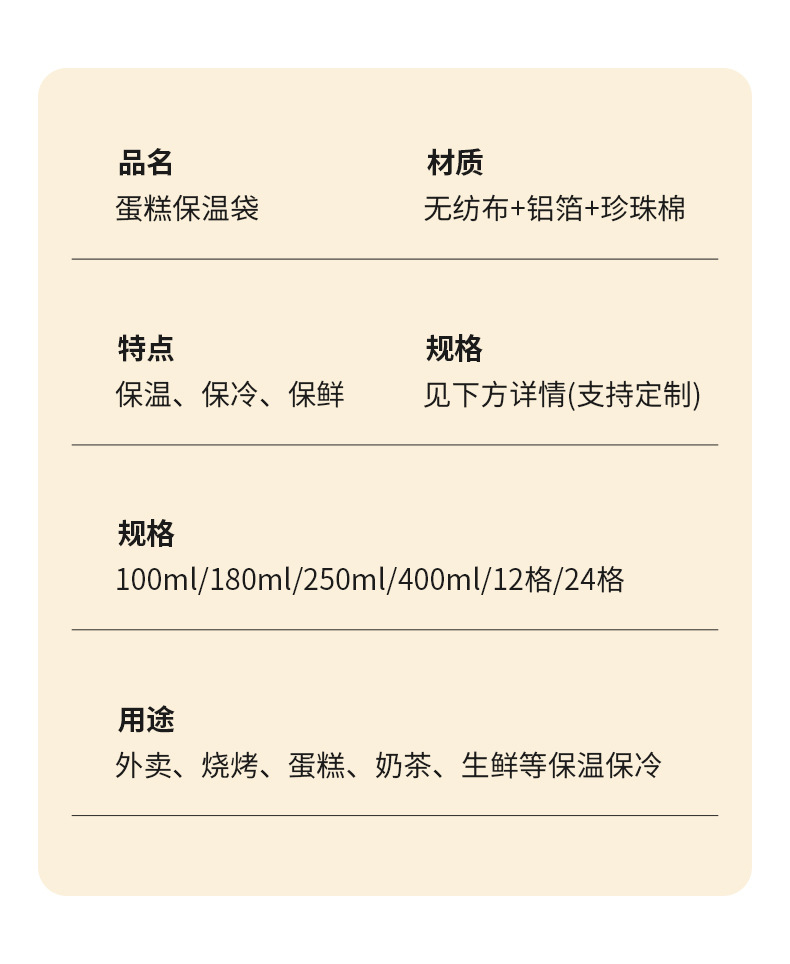 부직포 보온백, 코팅 아이스백, 일회용 휴대용 가방, 생일 케이크 가방, 해산물 스테이크 보냉백, 방수