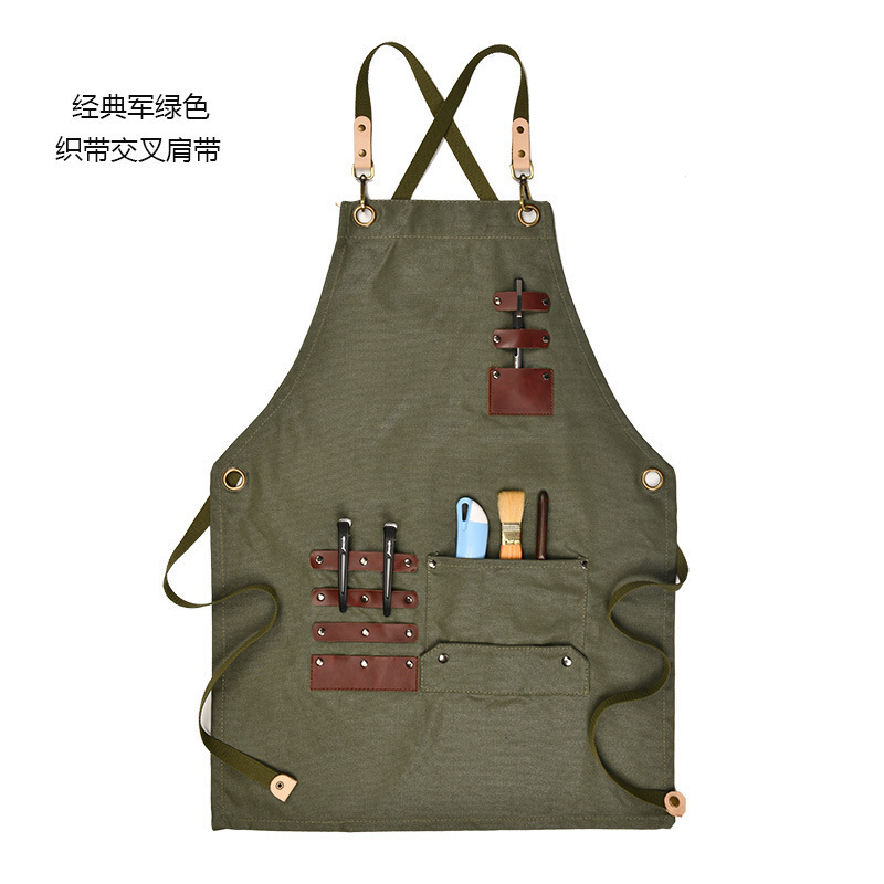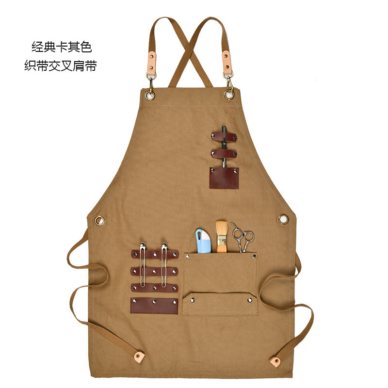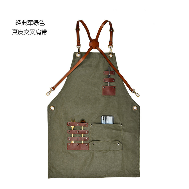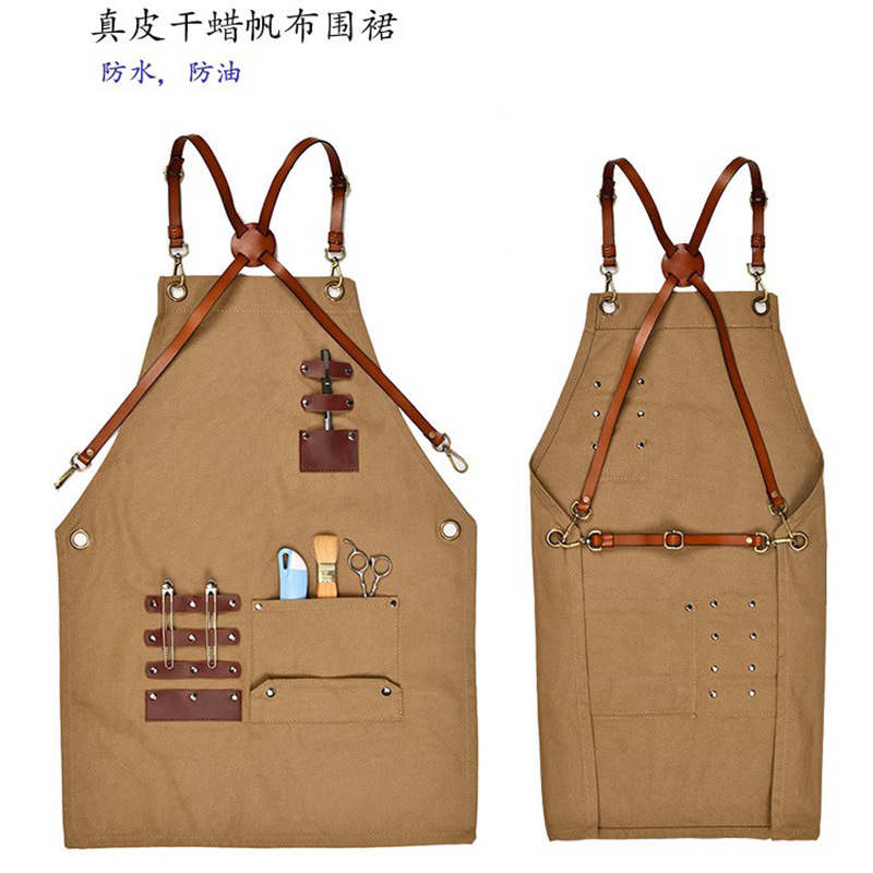 공급 외국 드라이 왁스 앞치마 캔버스 데님 카키 커피 숍 꽃 가게 로고 인쇄 가죽 액세서리 앞치마스토어 가기