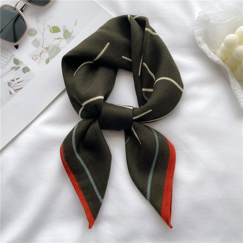 심플한 작은 사각 스카프, 벨벳 느낌의 헤링본 패턴, 부드러운 숄 스카프, 다용도 라인 배색 헤드 스카프, 목도리, 여성용 스카프