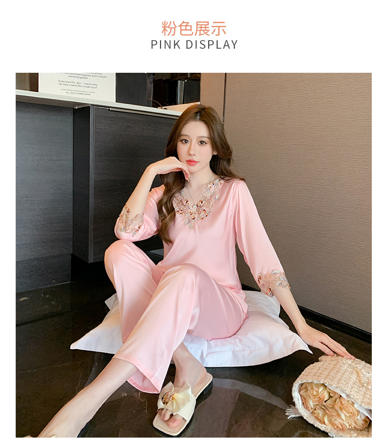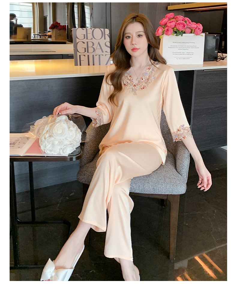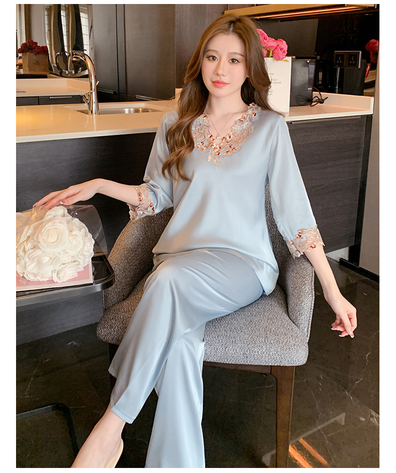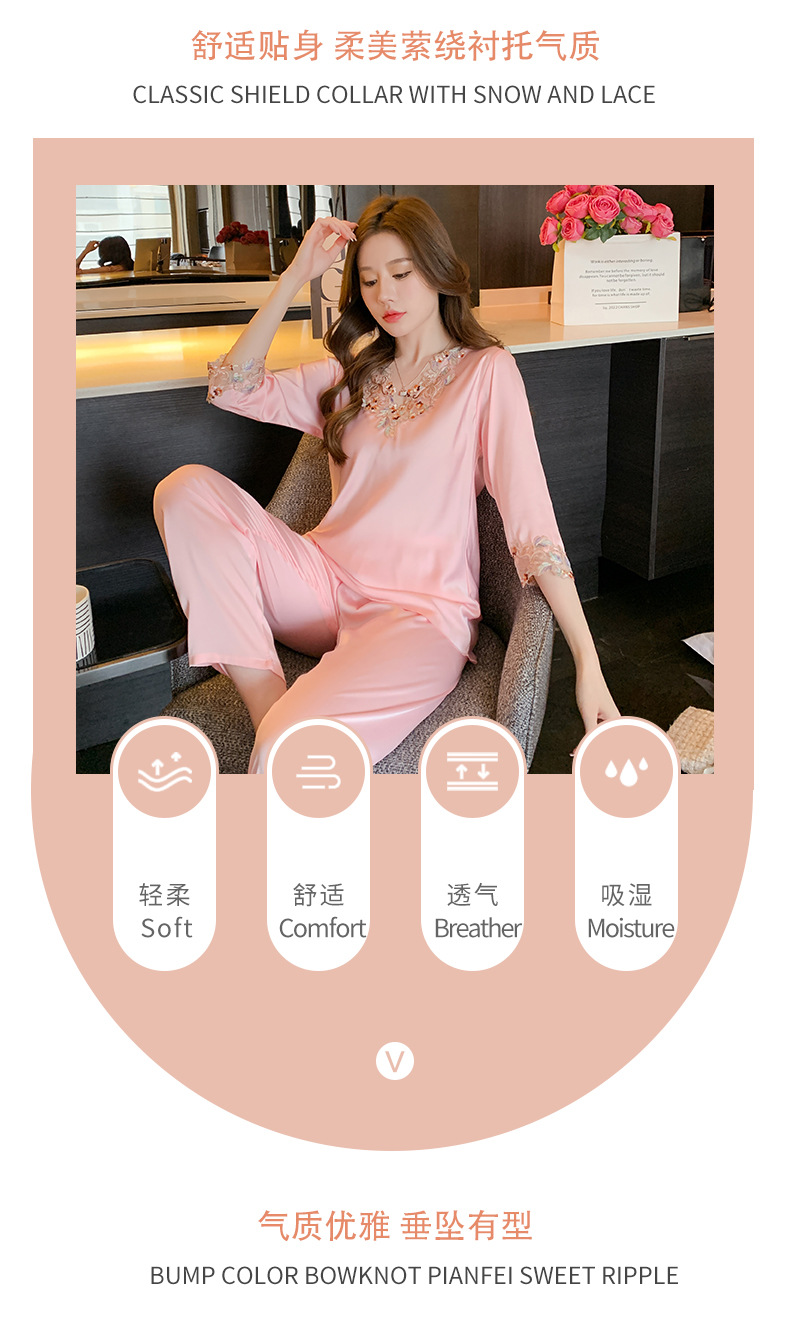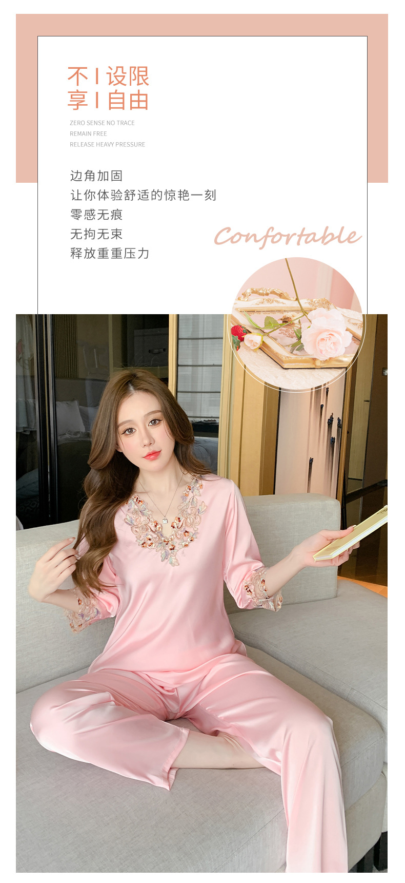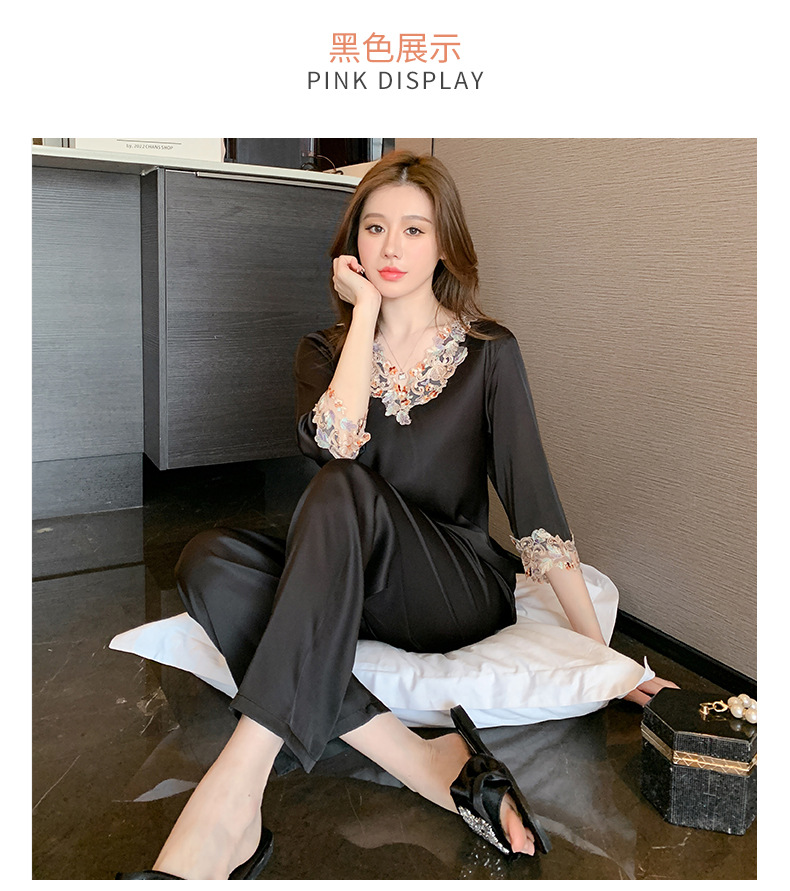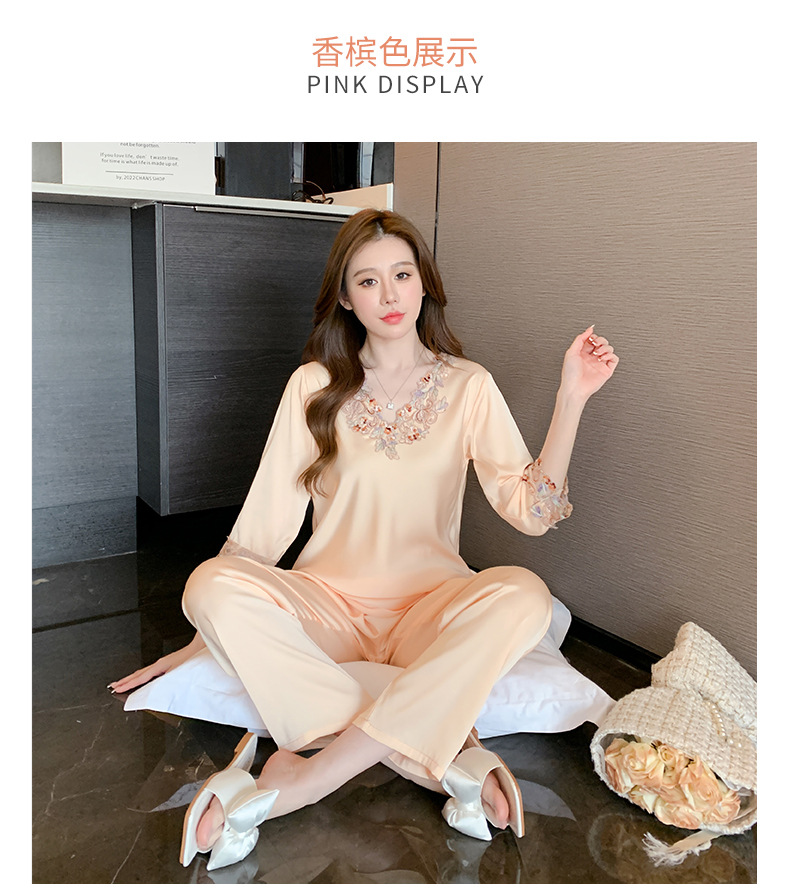 잠옷 여자의 봄과 가을 실키 새틴 긴 소매 여자의 잠옷 가정 옷 세트 섹시한 다채로운 레이스 하이 엔드 감각스토어 가기
