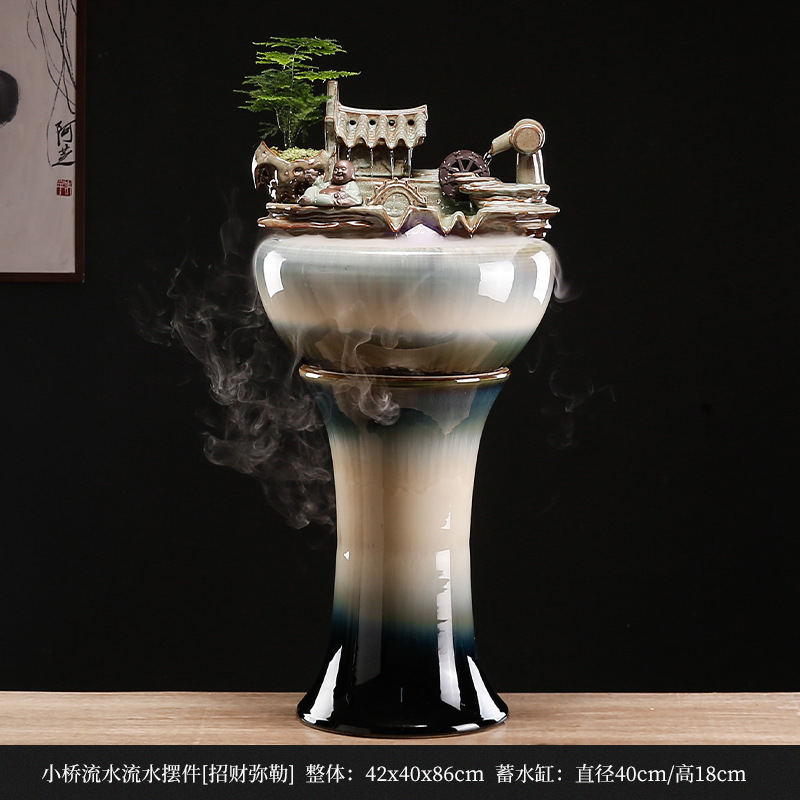 • 착륙 작은 다리와 흐르는 물-Zhaocai Maitreya + 아스파라거스 원자화