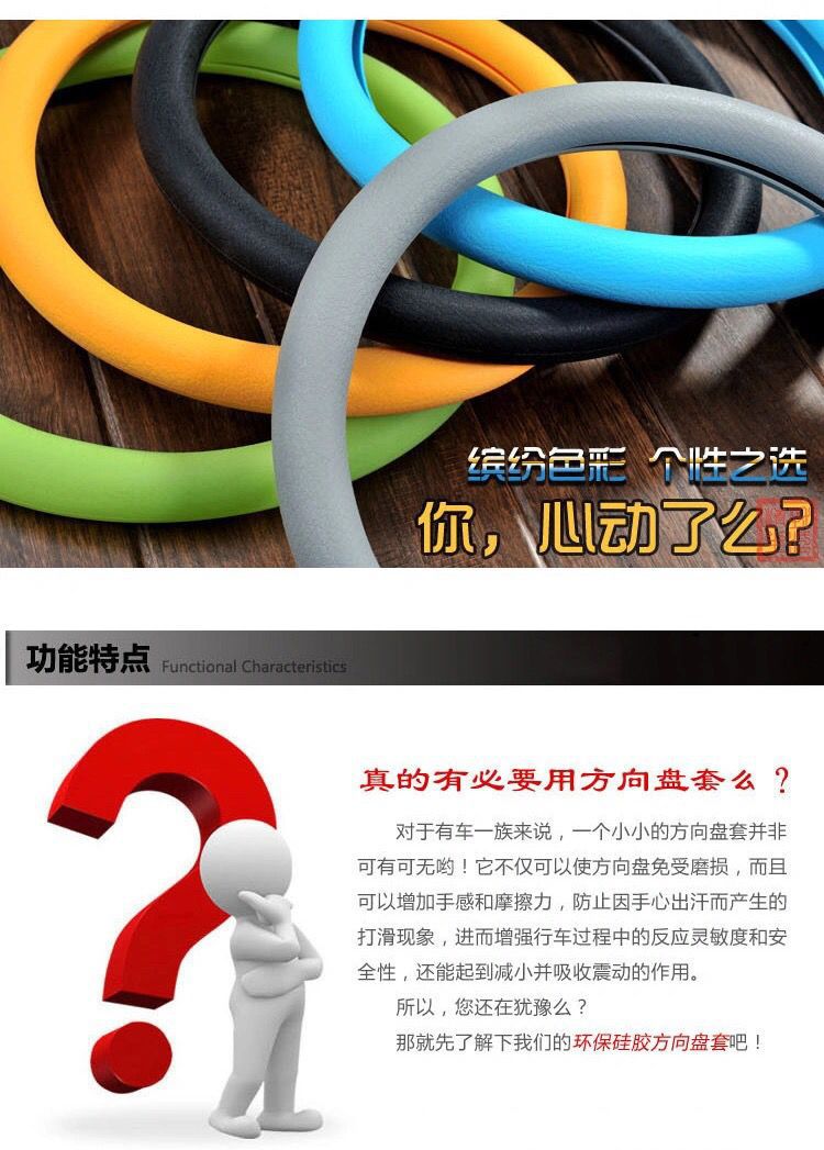 Car Four Seasons 트럭 유니버설 실리콘 스포츠 스티어링 휠 커버 귀여운 남성과 여성의 자동차 미끄럼 방지 무취 실리콘 핸들 커버