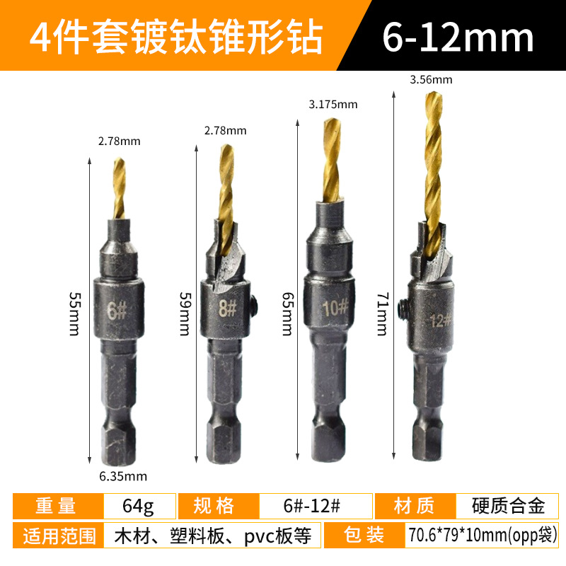 • 4 피스 콘 드릴 6-12mm 티타늄 도금