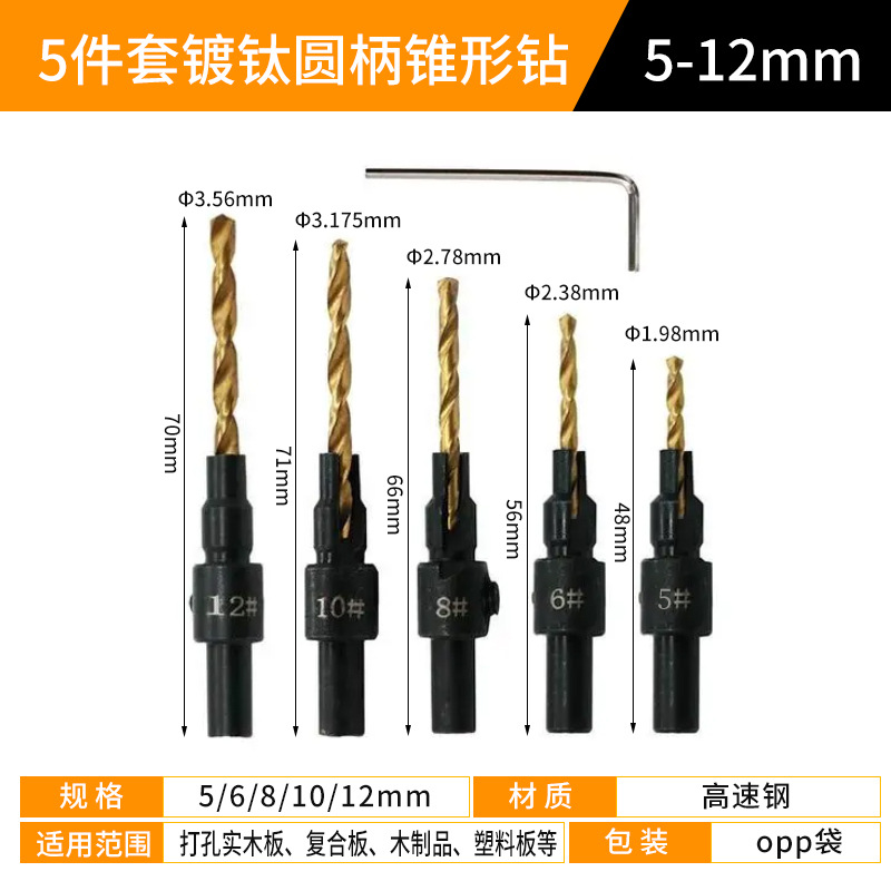 • 티타늄 도금 원형 생크 테이퍼 드릴 5/6/8/10/12mm 세트