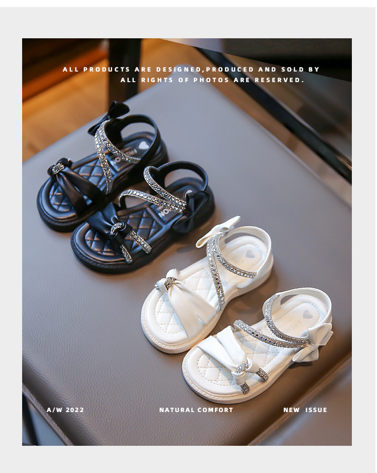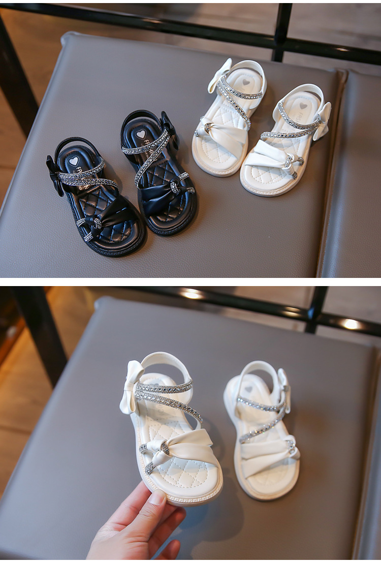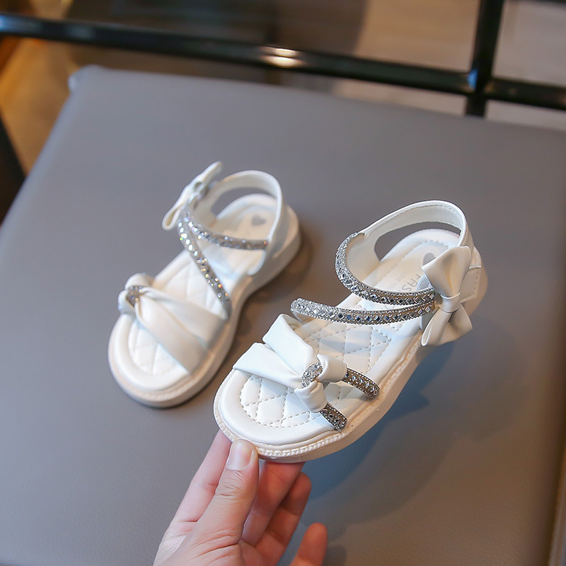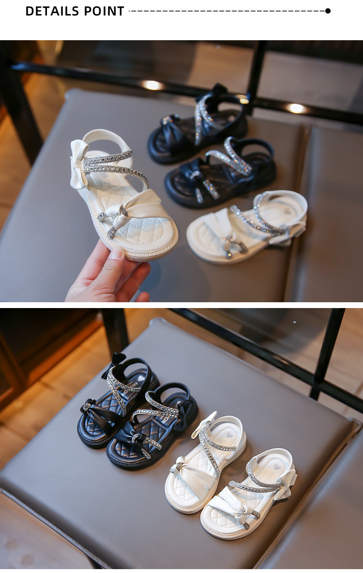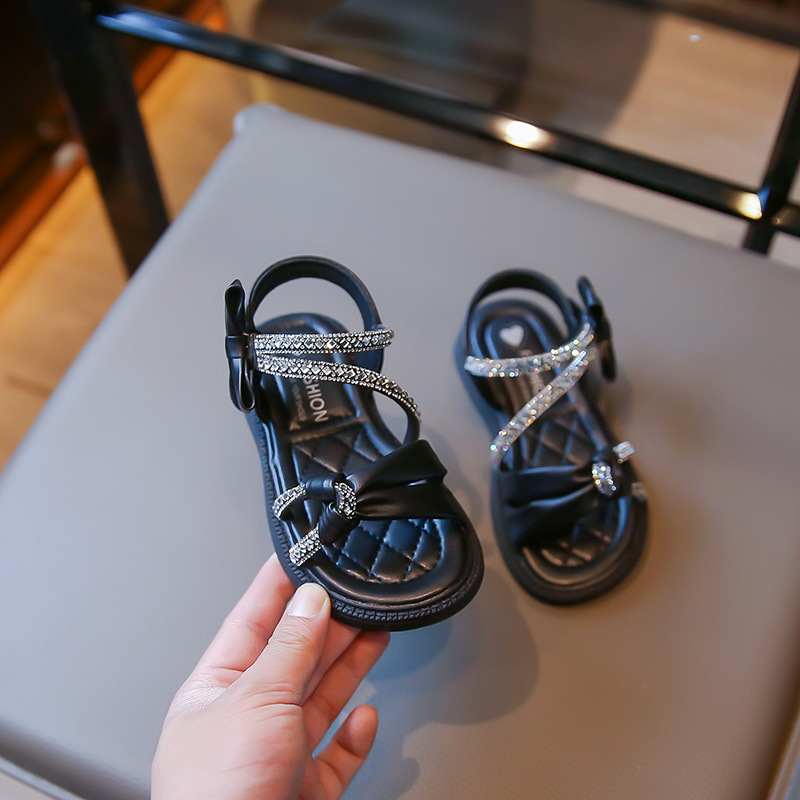 여자 신발 공주 신발 2024 여름 새로운 어린이 샌들 아기 어린 소녀 크리스탈 신발 부드러운 바닥 패션 미끄럼 방지