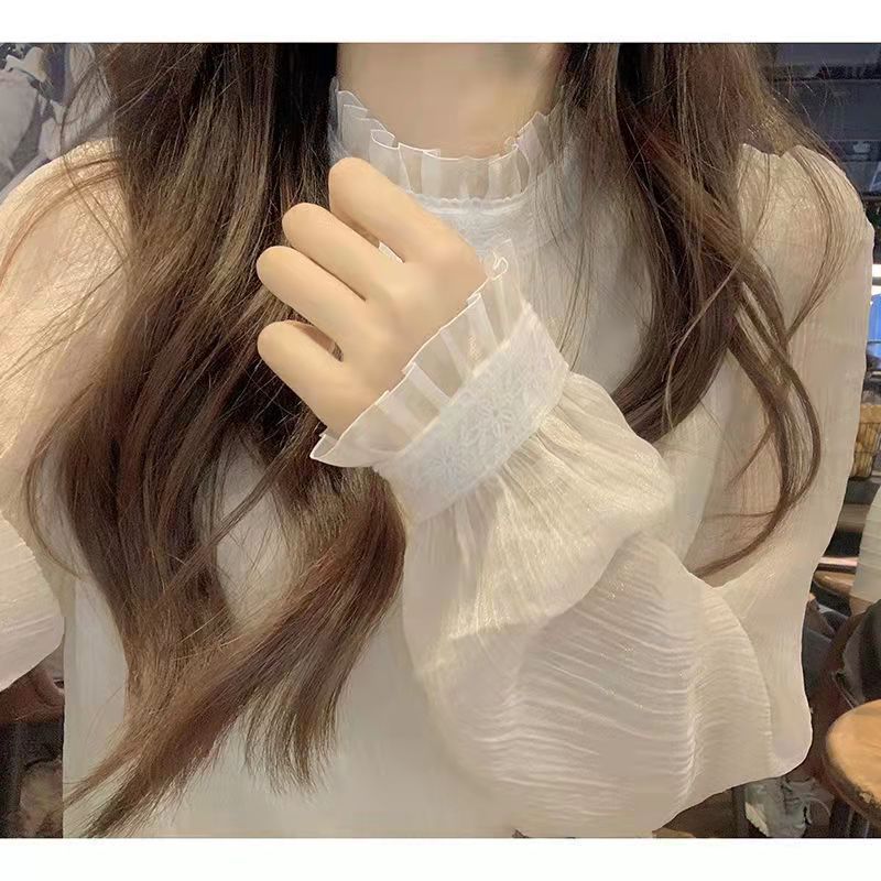 레이스 칼라 레이스베이스 셔츠 여성의 봄과 가을 디자인 감각 틈새 메쉬 쉬폰 셔츠 탑 긴 소매 내부 셔츠스토어 가기