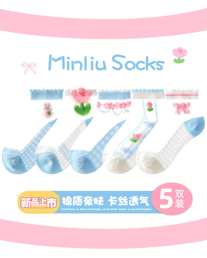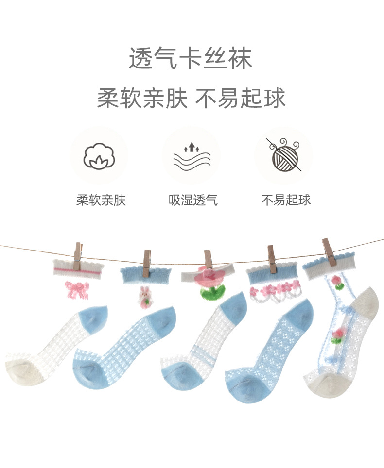 여름 가벼운 유리 실크 어린이 양말 도매 만화 토끼 양말 여자 레이스 양말 통기성 아이스 실크 얇은