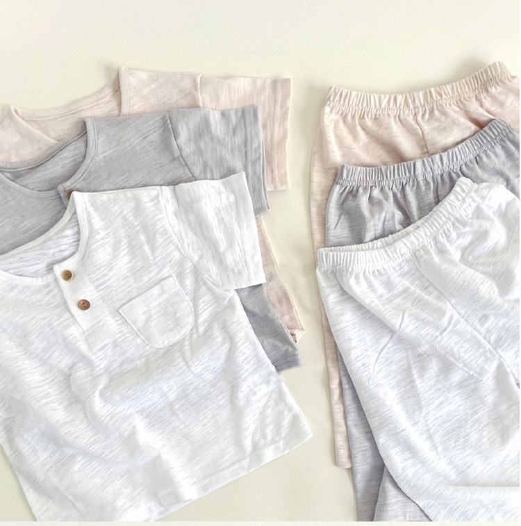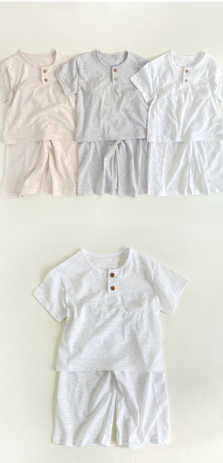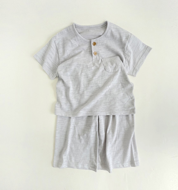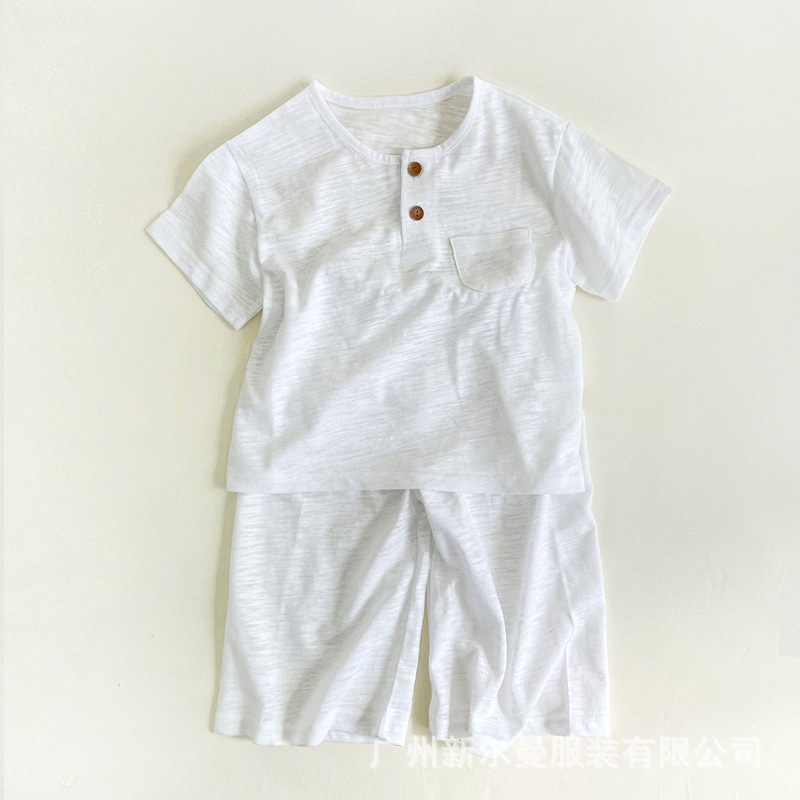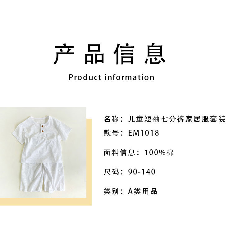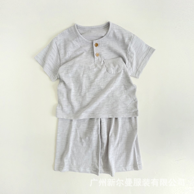 한국어 스타일 대나무 면화 어린이 여름 잠옷 세트 반팔 소년과 소녀 자른 바지 가정 의류 아기 에어컨 의류스토어 가기