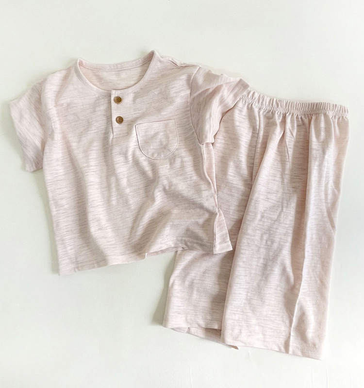 한국어 스타일 대나무 면화 어린이 여름 잠옷 세트 반팔 소년과 소녀 자른 바지 가정 의류 아기 에어컨 의류