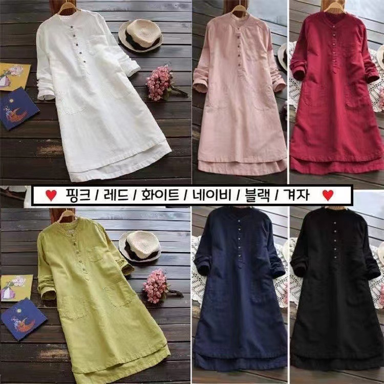 804 # 봄가을 면마 중간 길이 긴팔 셔츠 슬림핏 패션 빅사이즈 캐주얼 아우터웨어스토어 가기