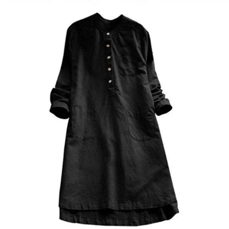 804 # 봄가을 면마 중간 길이 긴팔 셔츠 슬림핏 패션 빅사이즈 캐주얼 아우터웨어