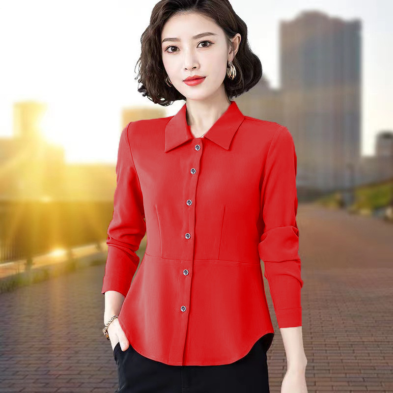 여성 셔츠 2024 봄 가을 셔츠 엄마용 긴팔 큰 사이즈 우아한 슬림핏 슬리밍 이너웨어 스플라이싱 디자인스토어 가기