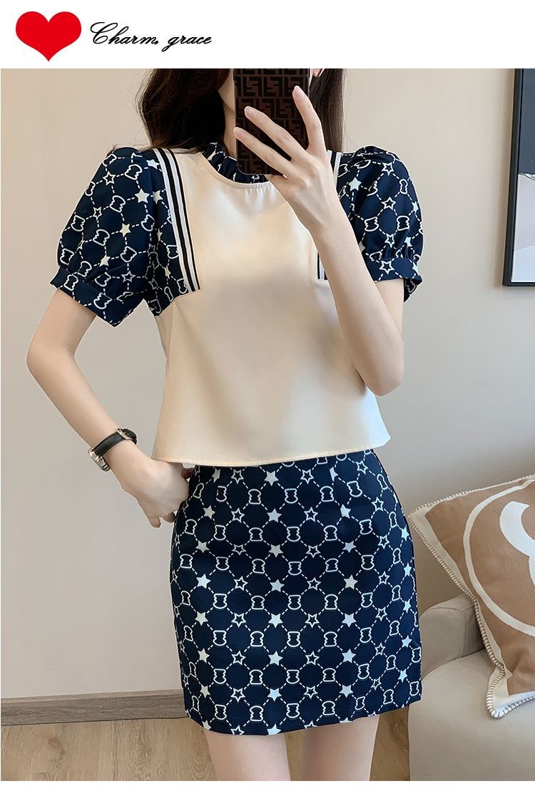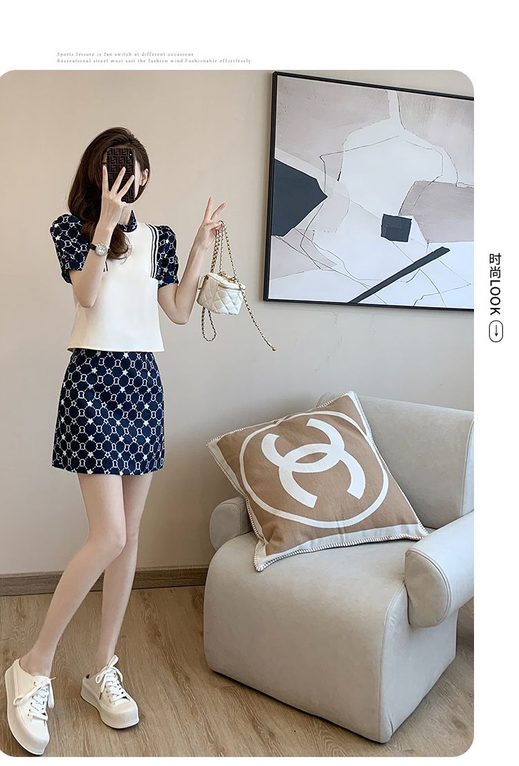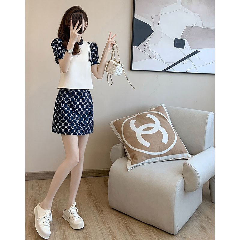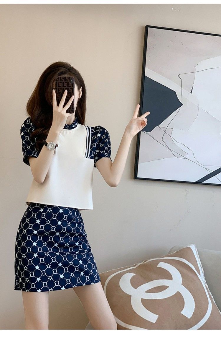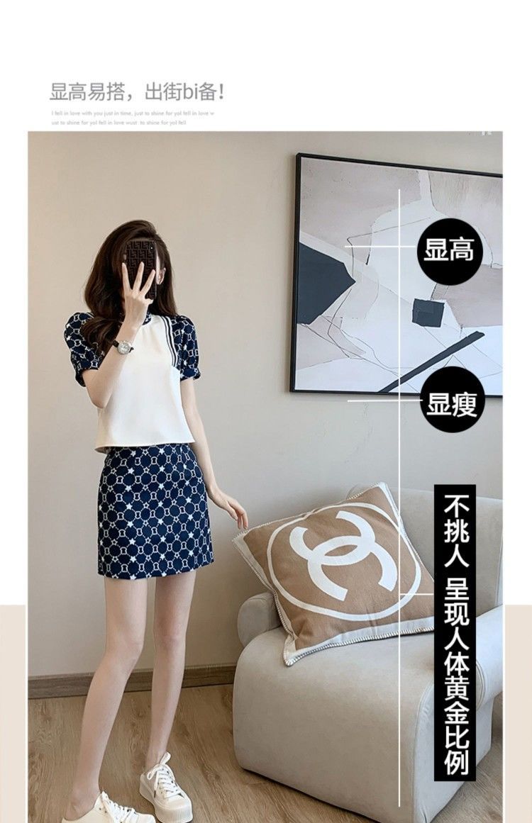 2026년 신상 캐주얼 오피스룩 스커트 퍼프소매 티셔츠 투피스 세트 여성 여름 원피스 패셔너블한 엄마룩스토어 가기