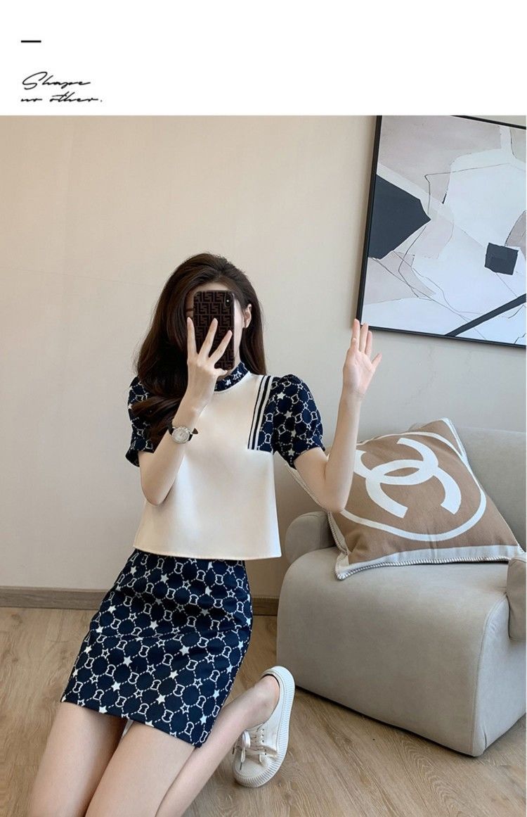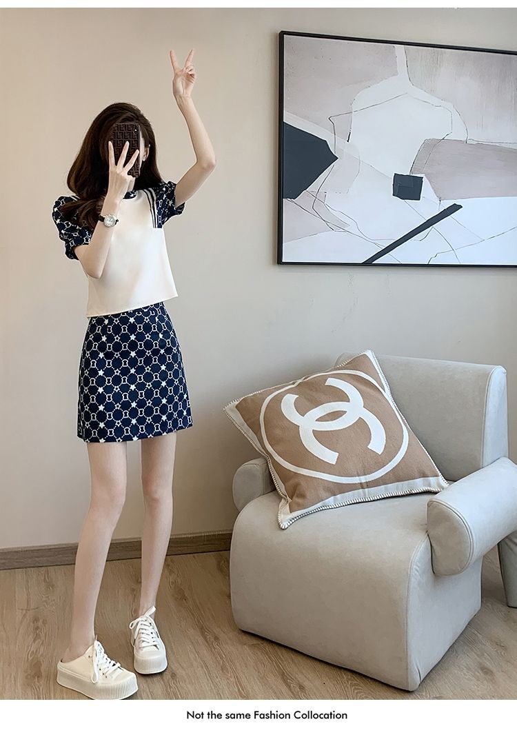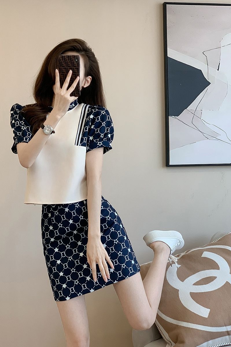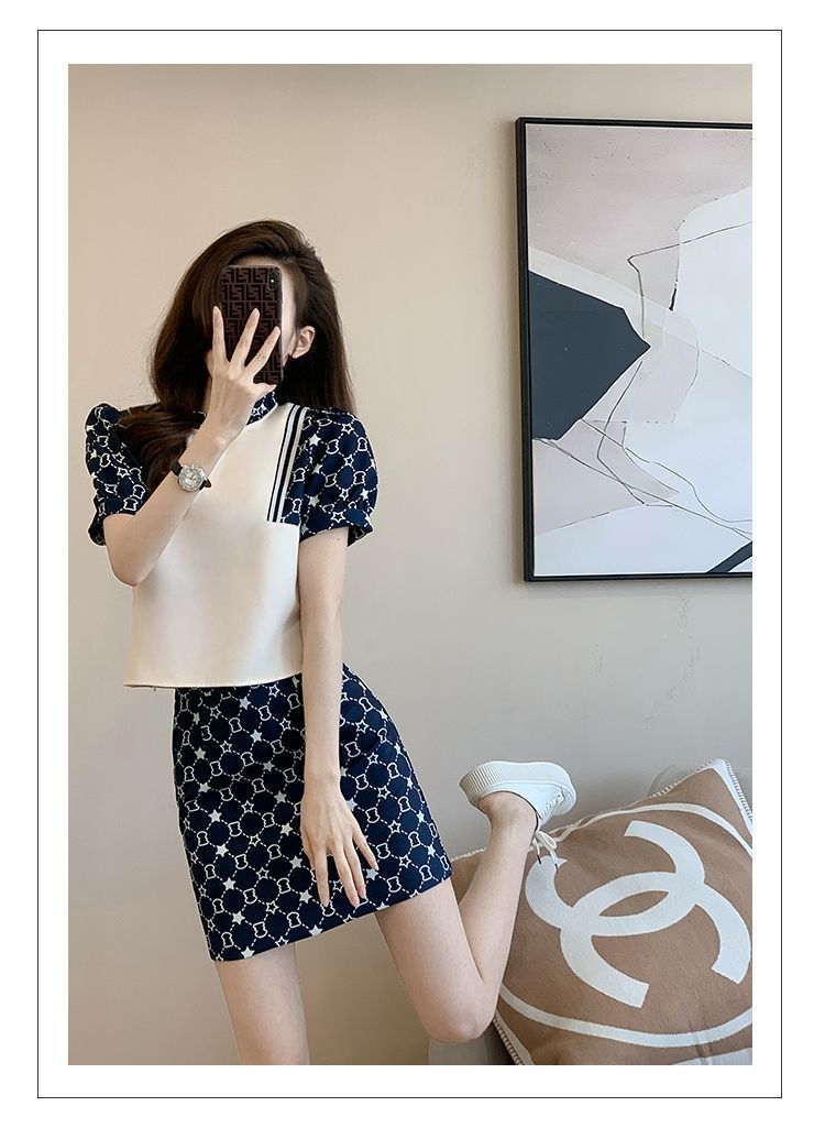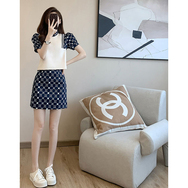 2026년 신상 캐주얼 오피스룩 스커트 퍼프소매 티셔츠 투피스 세트 여성 여름 원피스 패셔너블한 엄마룩스토어 가기