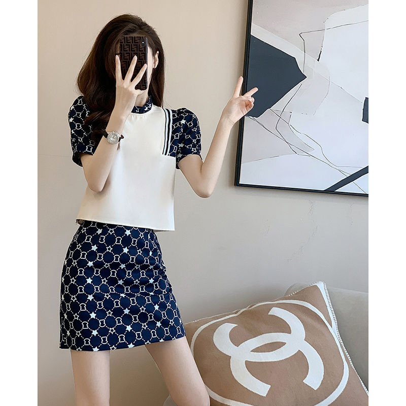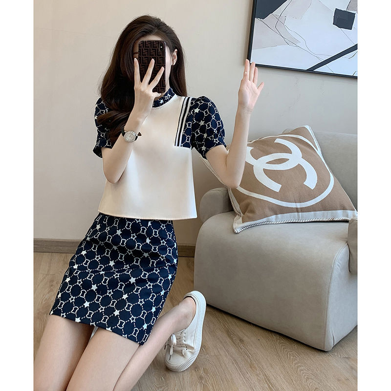 2026년 신상 캐주얼 오피스룩 스커트 퍼프소매 티셔츠 투피스 세트 여성 여름 원피스 패셔너블한 엄마룩
