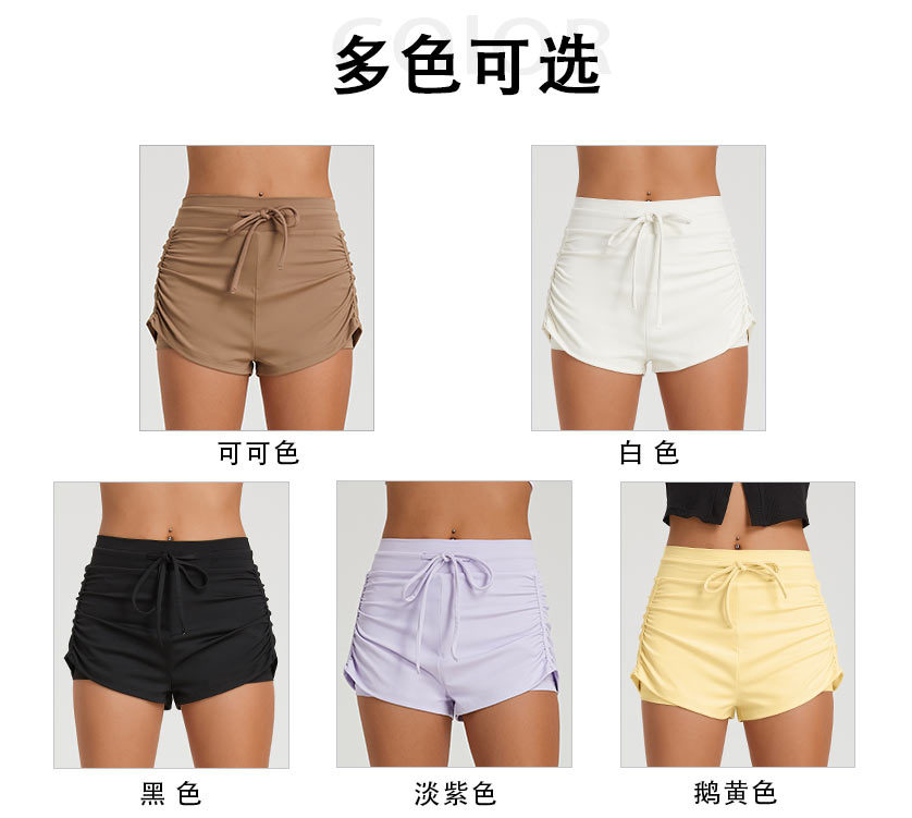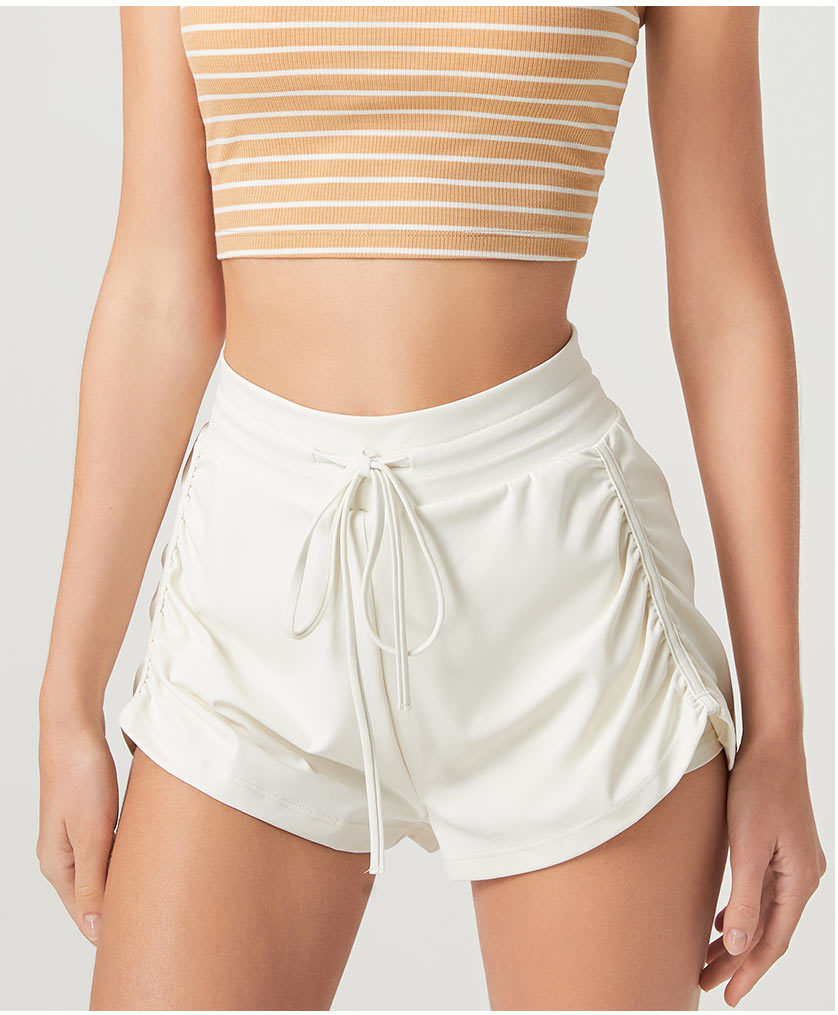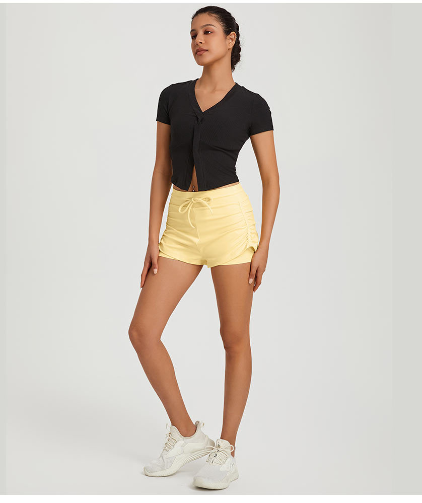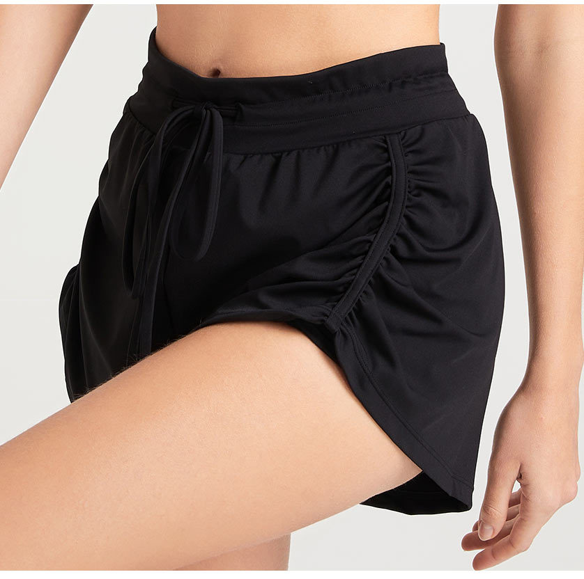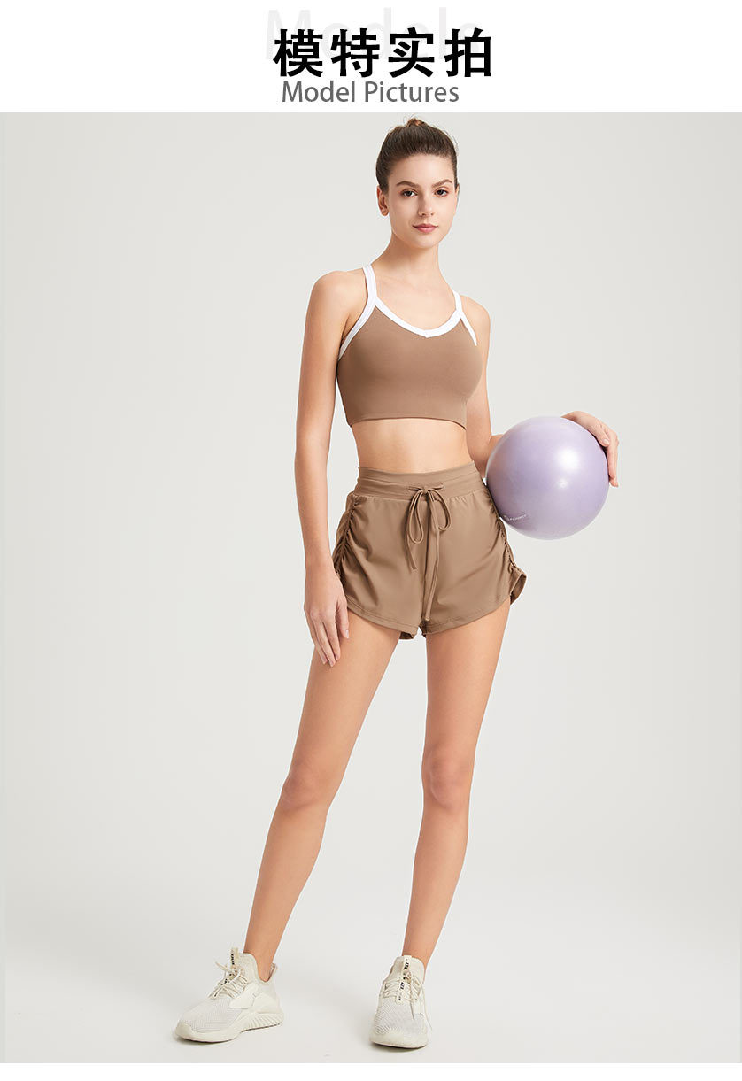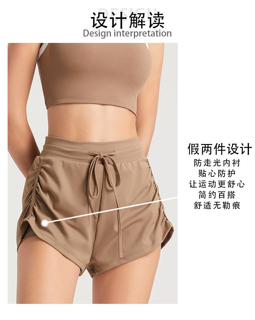 새로운 요가 스포츠 반바지 달리기 피트니스 요가 바지 사이드 로프 주름 가짜 투피스 반바지 안티 라이트