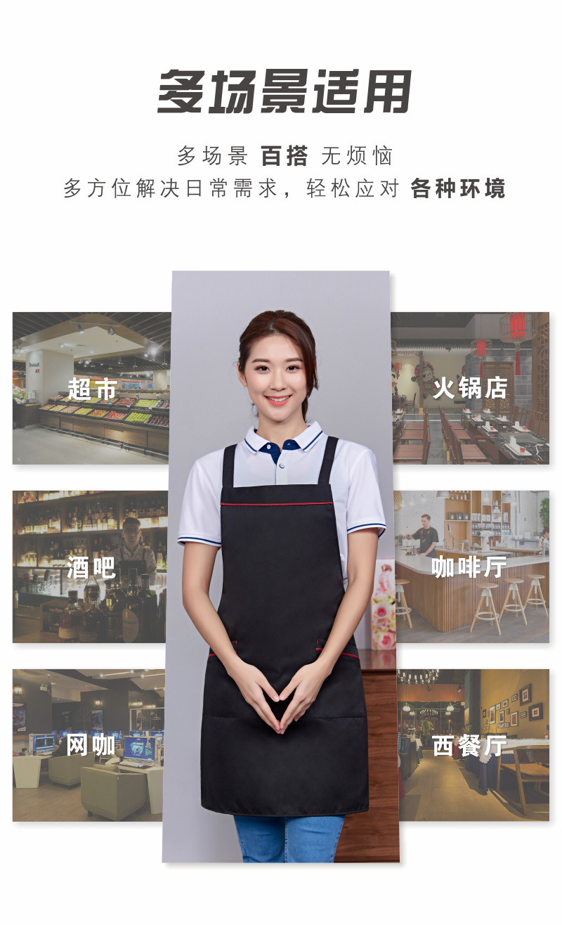 크로스 스트랩 배색 앞치마 맞춤 로고 인쇄 카페 체인점 슈퍼마켓 케이터링 작업복 앞치마 주문 제작스토어 가기