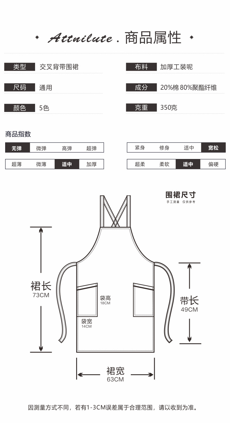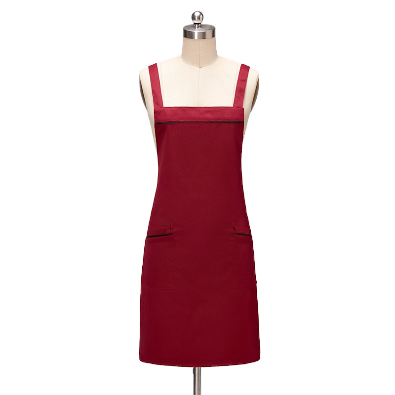 크로스 스트랩 배색 앞치마 맞춤 로고 인쇄 카페 체인점 슈퍼마켓 케이터링 작업복 앞치마 주문 제작