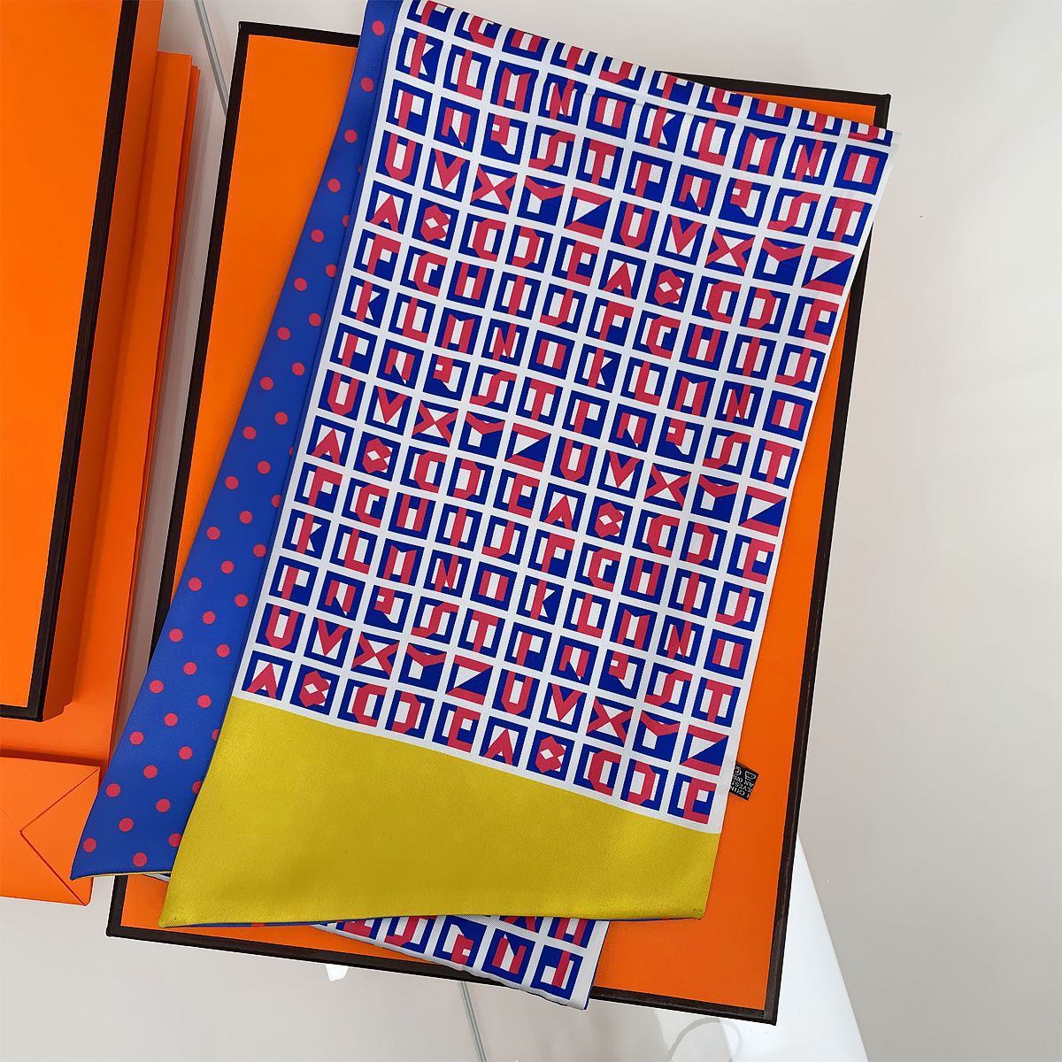 북유럽 줄무늬 미니멀리스트 실크 스카프 여성의 긴 리본 서양식 장식 스카프 봄/여름 가을 긴 얇은 스카프스토어 가기