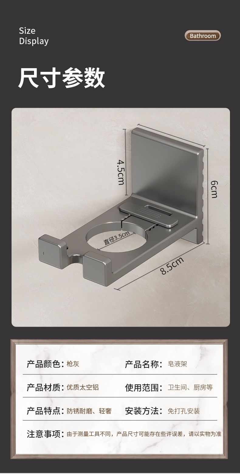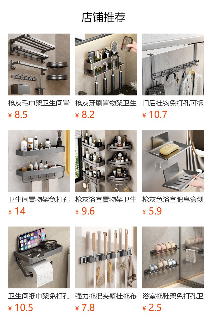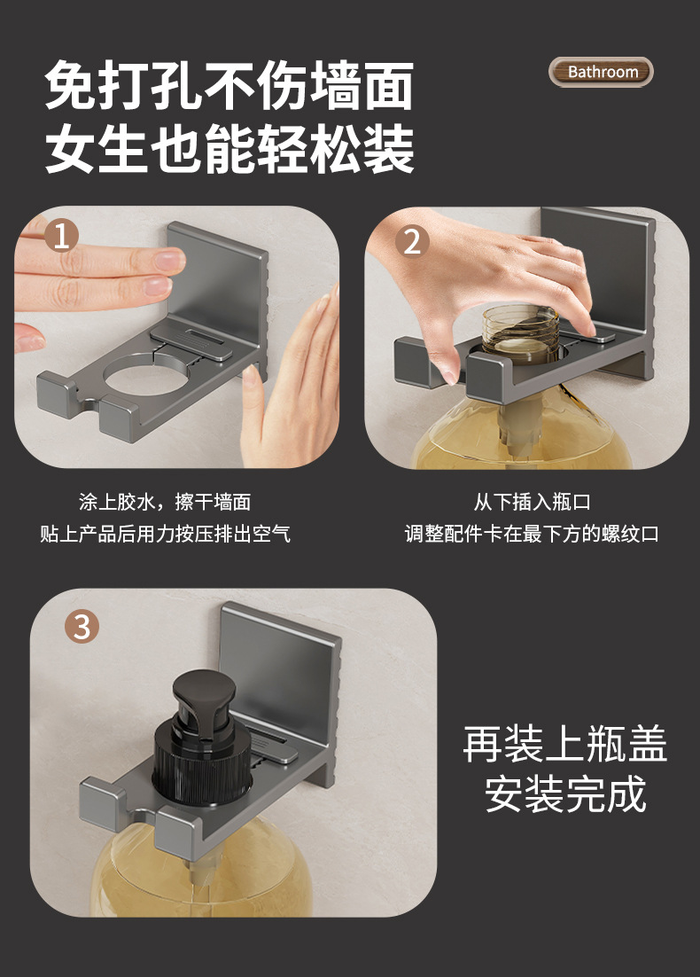 건 그레이 샤워 젤 스토리지 랙 펀치 프리 세제 걸이 욕실 샴푸 화장실 손 세정제 벽걸이