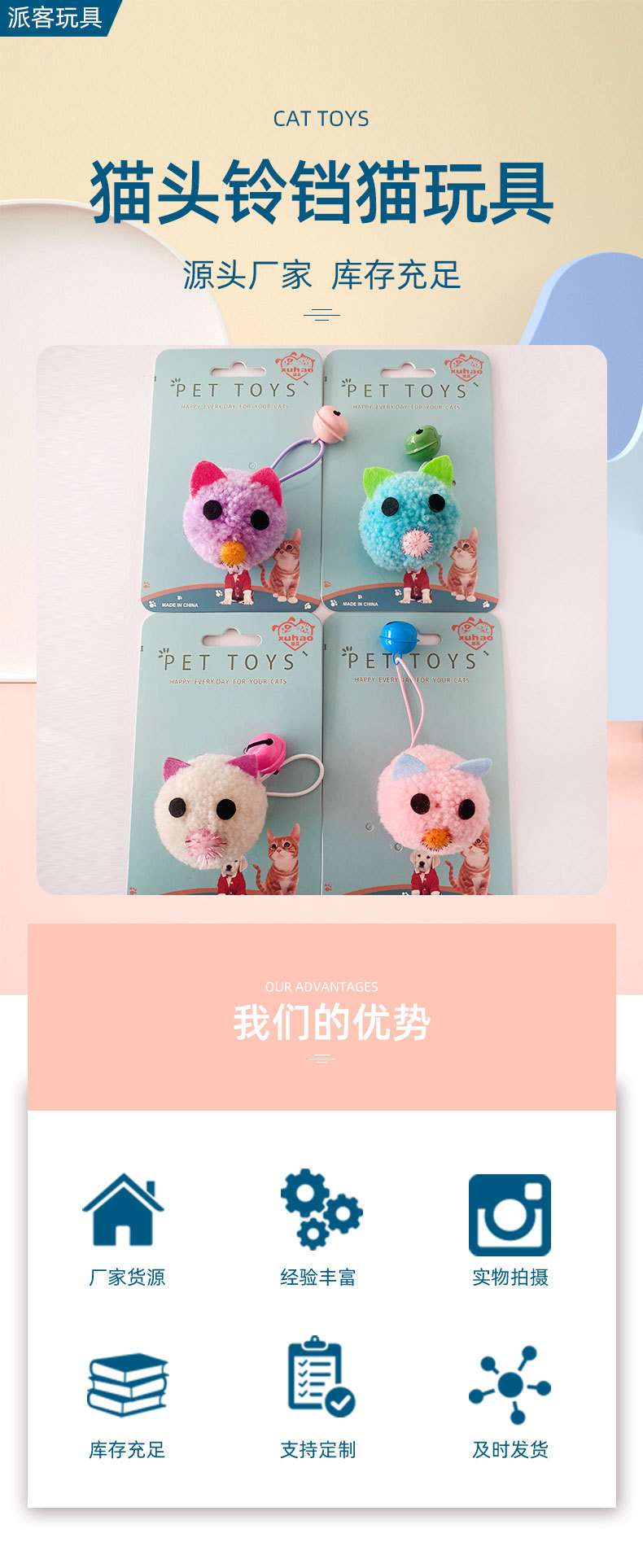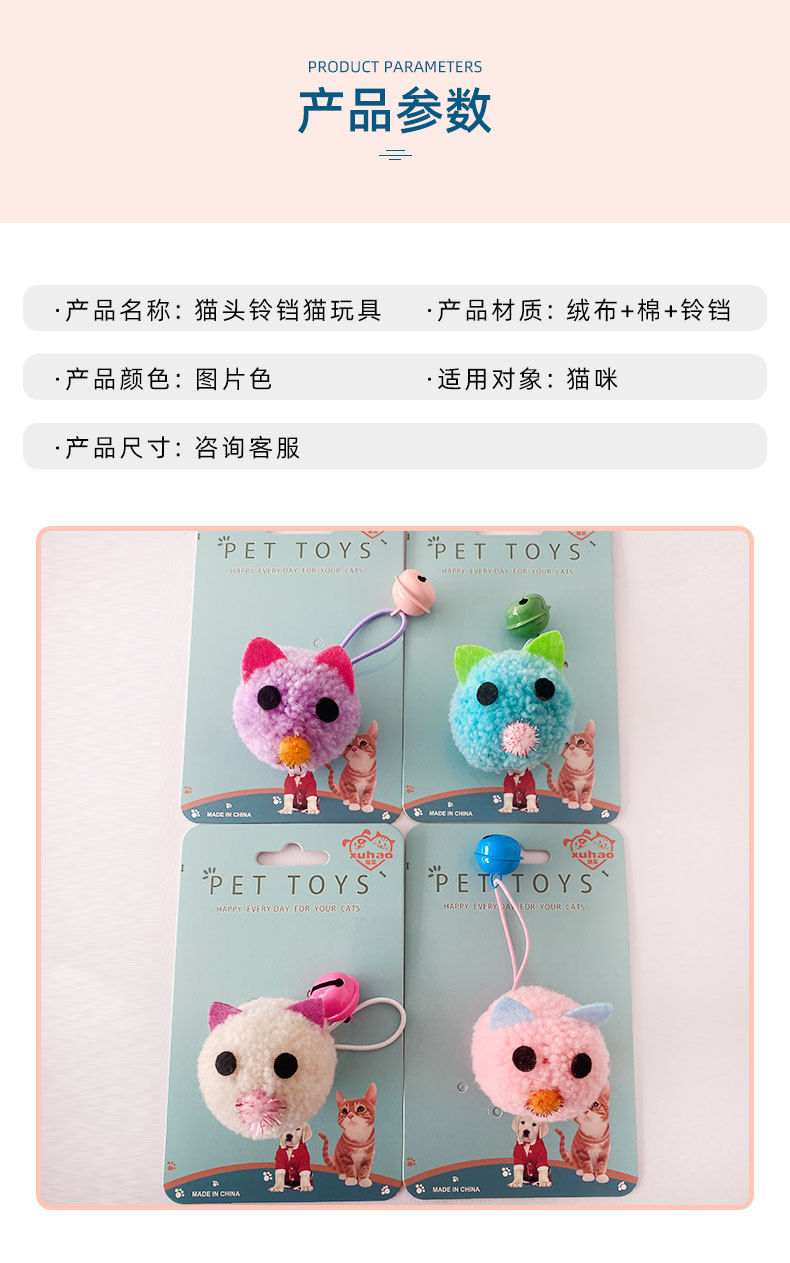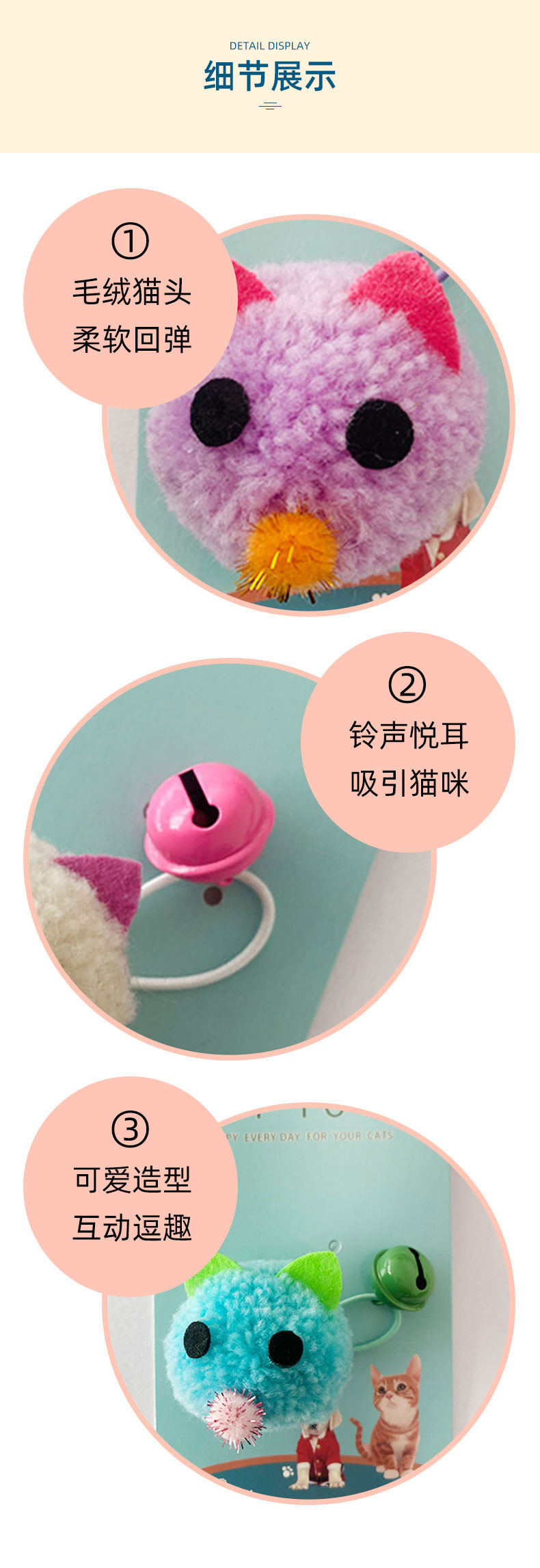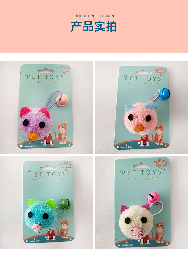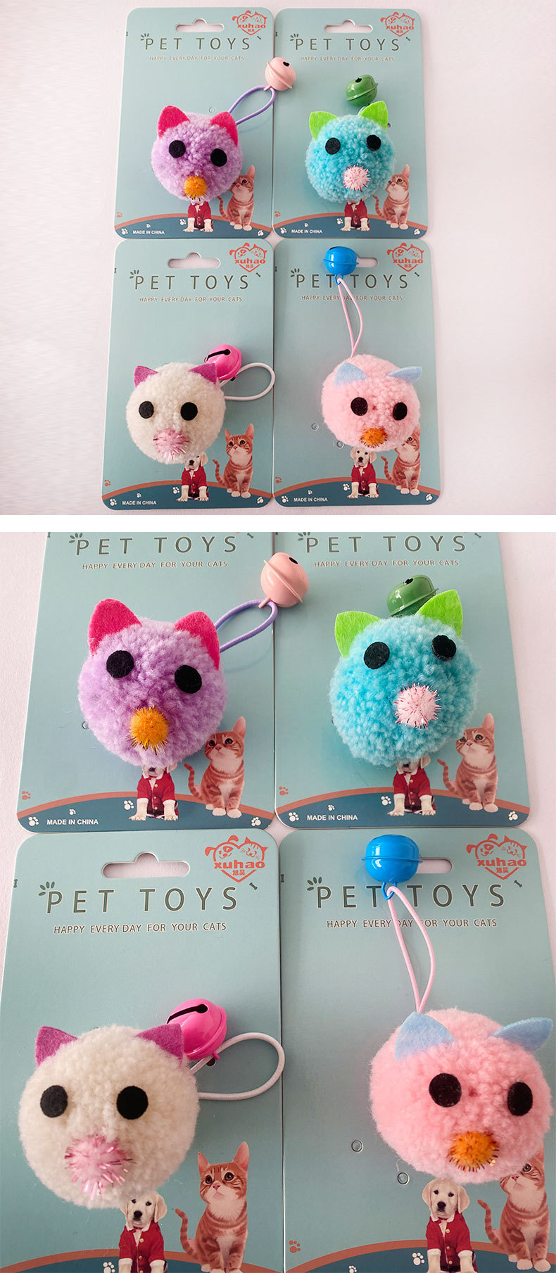 고양이 헤드벨 애완동물 상호작용 용품 고양이 장난감 컬러풀 벨 플러시 고양이 놀이용 장난감 심심함 해소 씹는 장난감 도매