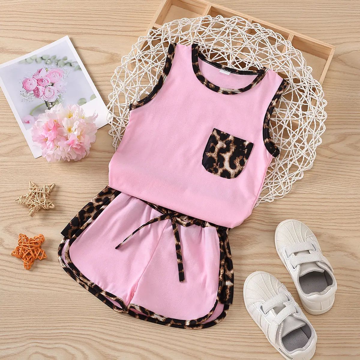 ins 국경 간 무역 캐주얼 남성 및 여성 민소매 조끼 반바지 투피스 슈트 아동복 무역 도매 저렴한 가격 정리